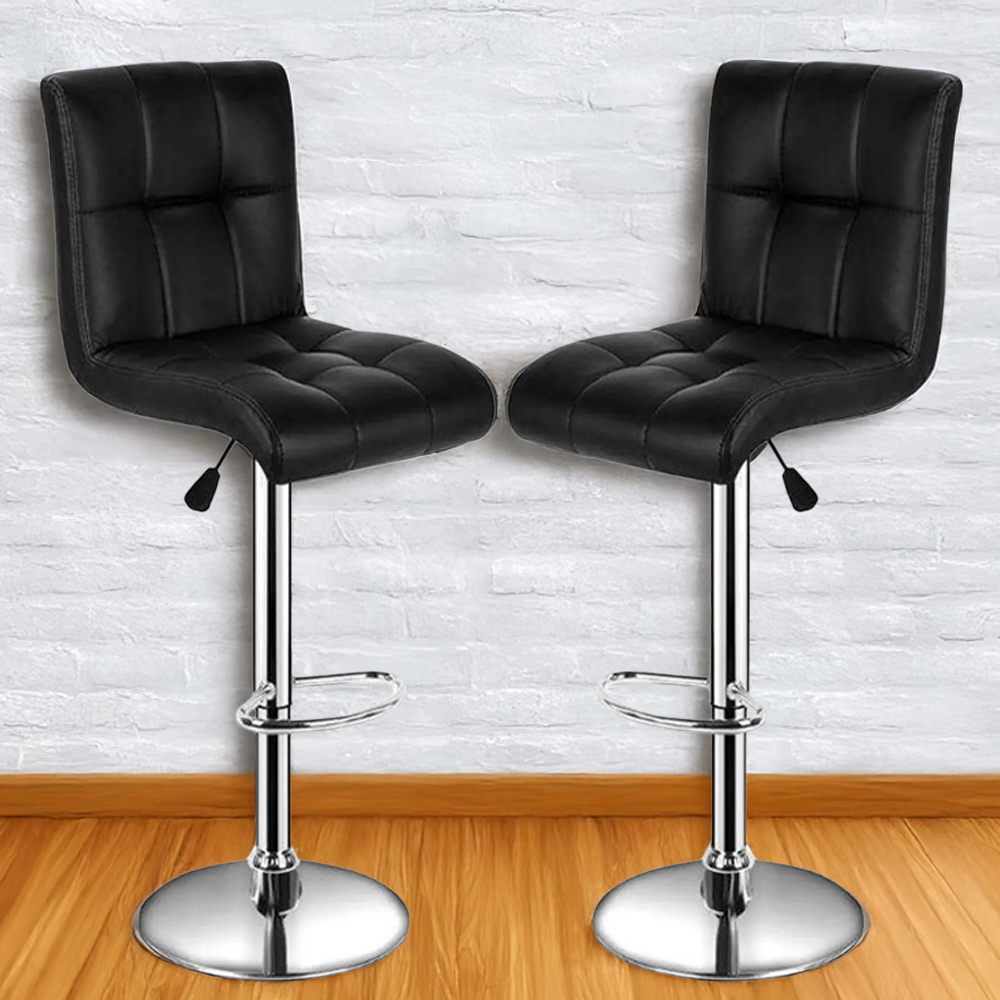 Gr8 Home Set Of 2 Faux Leather Breakfast Bar Stool Swivel Kitchen Cafe Restaurant Dining Chrome Gas Lift Pair Of Seats. Kick back in your kitchen with this modern executive bar stool. Featuring a padded seat and back rest, it's comfy and supportive. Plus its PU leather-effect upholstery is easy to wipe clean. The adjustable gas-lift seat suits a range of heights and the chrome stand has a sleek, contemporary style. Featuring swivel functionality, it gives you extra flexibility to move around. PU Upholstered Tufted 360 Degree Swivel Bar Chair, Tufted Seat and Back, Contemporary Modern Design, Bentwood Frame, 50mm High Density Foam, Steel Base with Chrome Finish, Class I 200mm Chrome Gas Lift, Chrome Footrest, 390mm Chrome Base, Dimensions 380 x 410 x 950~1150mm, 2 Piece Set.