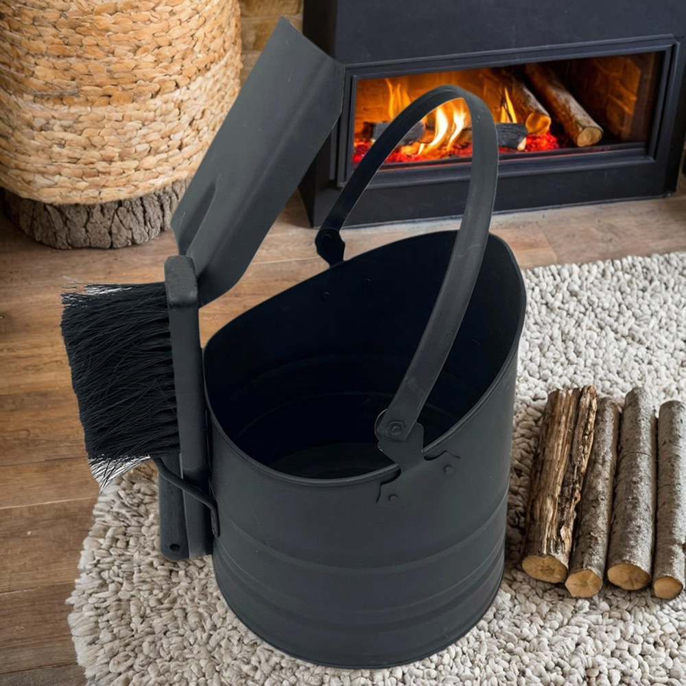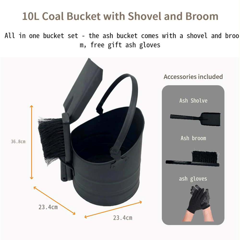 Gr8 Home 10 Litre Metal Coal Scuttle Bucket Waterloo Style Wood Hod Fire Charcoal Ash Log Fireside Storage Bin Fireplace Basket with Shovel Gloves and Hand Brush Broom Set. All in one bucket set - the ash bucket comes with a shovel and a wooden broom to help you keep your fireplace tidy. It’s also fitted with wooden handles for perfect grip; easily carry the ash bucket by its sturdy metal handle. The raised bottom keeps the bucket away from the ground, thus protecting the floor from heat. Large capacity - 10L capacity can easily store or transfer wood ashes. Suitable for fire pit, fireplace, wood burner. Of course, it can also be used for the transfer and removal of burning charcoal when grilling and the included shovel makes clean-up simple. Durable & Sturdy - Ash bucket and shovel are made of strong iron, able to withstand very high temperatures. The surface treatment with spray coating technology provides extra protective layer for our fireplace. 10L Coal Bucket with Shovel and Hand Broom. Size: 23.4x23.4x 36.8cm. Material: Wood, Glass, Iron, Metal. Colour: Black. Capacity: 10 litres