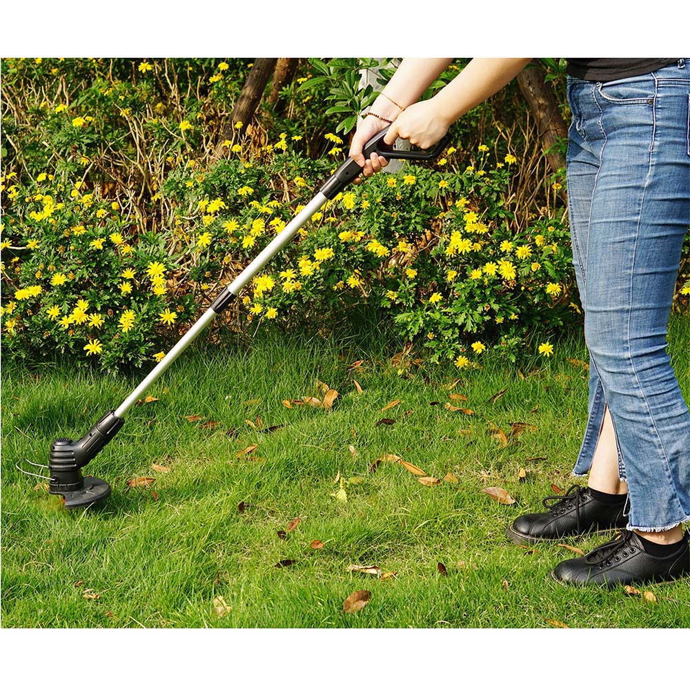 Gr8 Garden Cordless Electric Strimmer Grass Trimmer Portable Wireless Compact Weed Tree Cutter Garden Edger Cutting Power Tool With Battery. No more tangled cables or extension cords. Grass Trimmer is completely cordless, so you can trim all over your entire garden. Includes various blades for weeding and mowing, will not damage the turf, and can be used for Cutting weeds, trimming branches, and tidying yards and gardens. The grass cutter can easily reach all lawn edges, whether it is sloped or in a narrow space. The Electric Strimmer is equipped with an adjustable pole that can freely adjust for your needs. It is an efficient and reliable helper for keeping lawns, paths and flower beds clean, as well as for mowing lush grass brushes for yards or gardens. Portable Cordless Electric Grass Trimmer. Specification: Colour: black, Material: Aluminium tube / ABS, Full length: 105cm, shrinkage length: 30cm, Battery capacity: 3000mAh, Battery: Lithium ion. Feature: Portable wireless design, compact and light to carry and store. High-power all-copper motor, high efficiency and stability, stable operation, and good heat dissipation. 1~30cm length can be adjusted freely, making yard work more comfortable. 3000mAh lithium battery, up to 240 minutes of working time. Charging time: 4 hours, No-load speed: 18000rpm. Package included: 1 x Cordless Grass Trimmer, 4 x Plastic blades, 1 x Stainless steel blade, 1 x USB Cable, 1 x User Manual.
