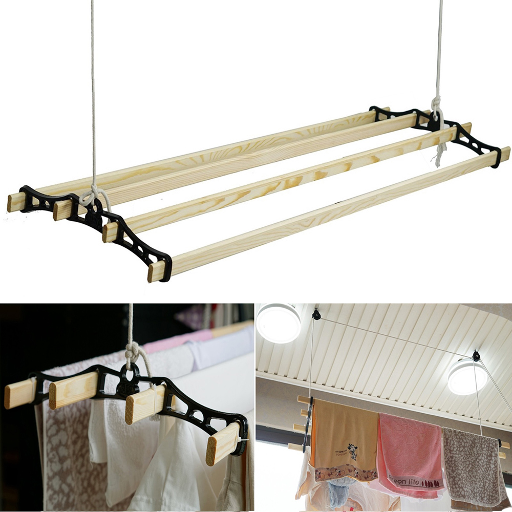 Black Cast Iron Wooden Hanging 1.2m Retro Vintage Antique 4 Lath Slat Victorian Edwardian Clothes Horse Creel Airer Dryer Kitchen Rack Ceiling Pulley Laundry Drier. Maximise the space in your home with this easy to install Victorian hanging clothes airer. The product is mounted to the ceiling and therefore uses the natural rising warm air in your home, to dry your clothes. Alternatively, you can hang your kitchen pans and dried flowers which will save on cupboard space and will create the charm of a Victorian kitchen in your home. Traditional Classic Ceiling Clothes Laundry Drying Airer Rack - 4 Rail, Material: Pine Wood, Cast Iron, Metal, Mounting type Ceiling Mount, ceiling airer kit includes everything you need: 2 x cast iron ends , 4 x Smooth premium Pine wood laths 120cm,Single pulley, Double pulley, zinc alloy, Heavy duty cotton pulley cord 12 Meter, Securing cleat, High quality screws and plugs, 16pc anti slip cable tie, Easy to understand installation instructions. High-Quality Materials: Crafted with high-quality materials, including ethically sourced pine wood and powder-coated cast iron, this clothes airer is built to last. The combination of these materials ensures longevity and reliability. Easy Installation: It's easy to fit on most ceilings, including sloped ones, thanks to its versatile design. The package includes illustrated instructions and a fixing kit, simplifying the installation process for your convenience. Durable and Strong Construction: The clothes airer is designed for durability and strength, featuring 4 high-quality pine laths that can withstand large clothing loads. The clear-coat varnished timber maintains a traditional appeal while remaining exceptionally robust.