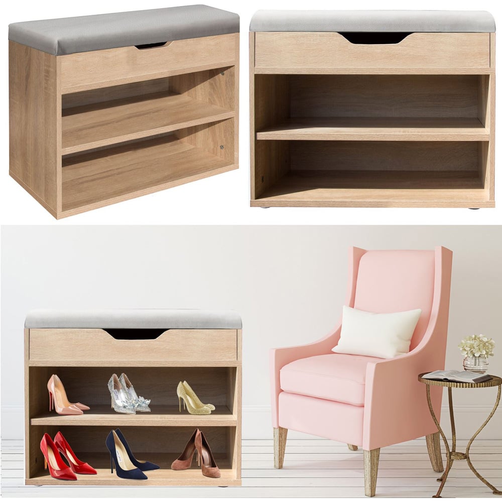 Enhance your entryway or hallway with the Gr8 Home Grey Wooden Shoes Storage Rack Bench. This versatile piece combines functionality and style, offering a convenient spot to change shoes after a long day. The bench features a two-tier double shelf design for ample shoe storage and a top compartment with a lid to keep smaller items like socks, gloves, hats, and scarves neatly organised. With an overall size of H40 x W30 x L60cm approximately, the bench is crafted from natural wood and topped with a padded fabric upholstery in grey for added comfort.
