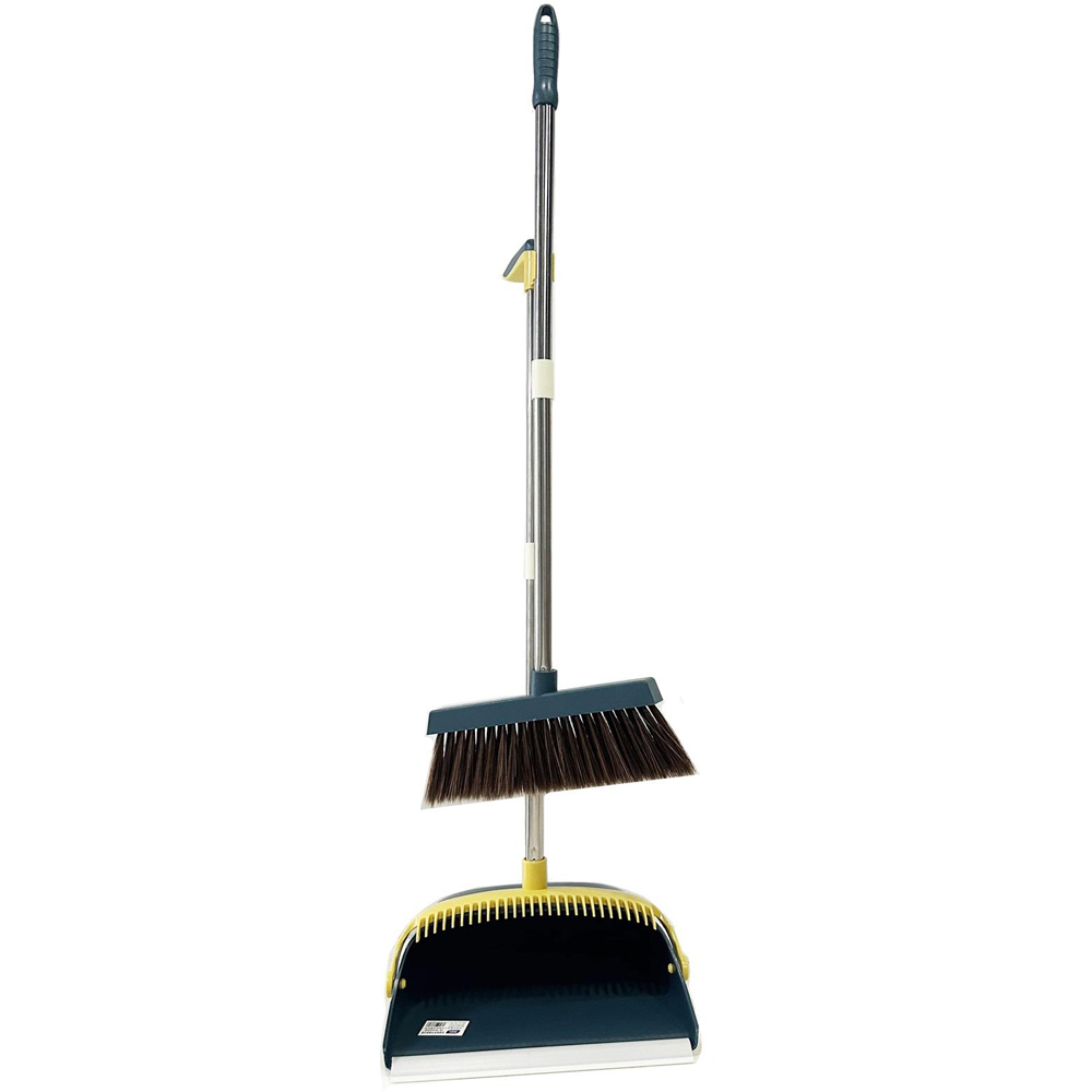 Gr8 Home Long Handled Folding Dustpan and Brush Set Heavy Duty Strong Metal Handle Foldable Lobby Dust Pan & Soft Bristles Broom Kitchen Bathroom Floor Sweeper. Tired of bending over and straining your back while cleaning? This Gr8 Home meticulously designed dustpan and broom set is here to make your cleaning routine a breeze. Crafted with utmost care, this set ensures every nook and cranny of your living space is free from dust, debris, and unsightly messes. Material: PP, Stainless Steel handle, TPR, PET bristle, Broom size: 28x3x90cm, Dustpan size: 26x25x89cm, Feature: Foldable to save space, prevent garbage from blowing away, has "teeth" to help remove the trash wrapped around the broom bristle.