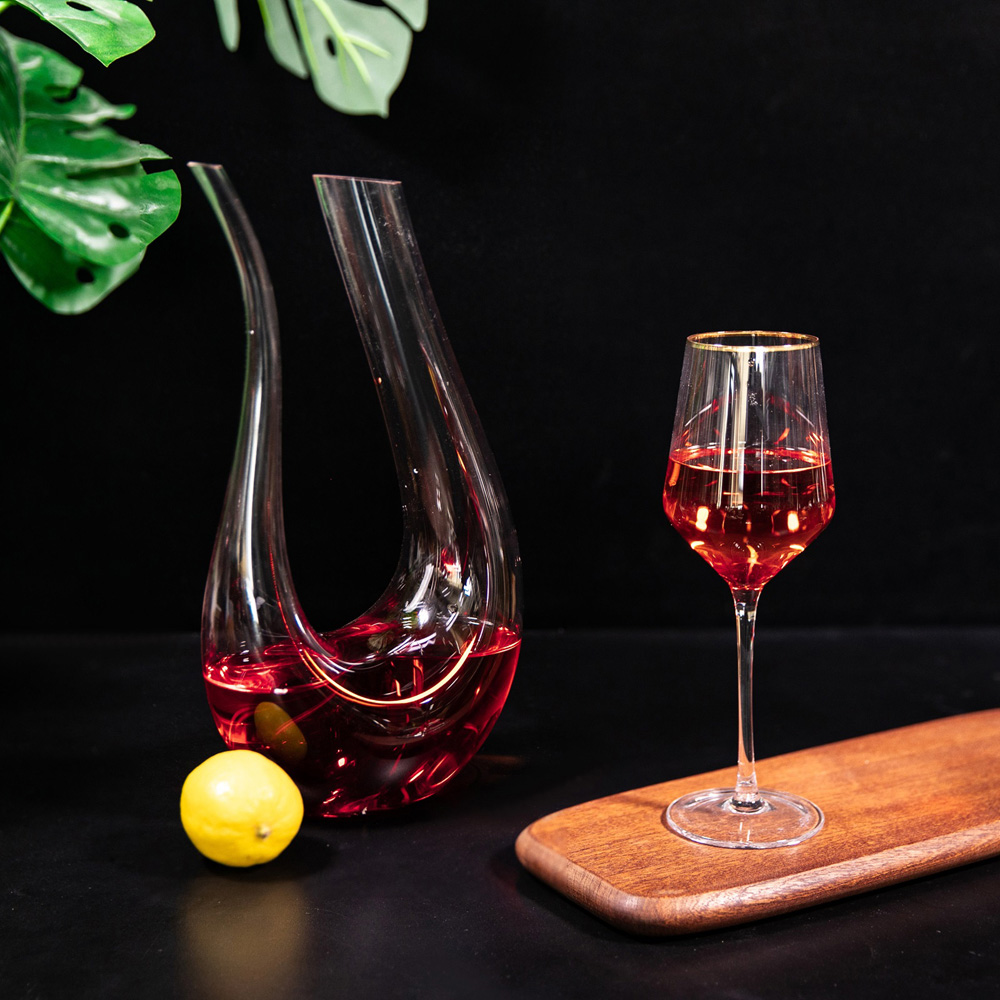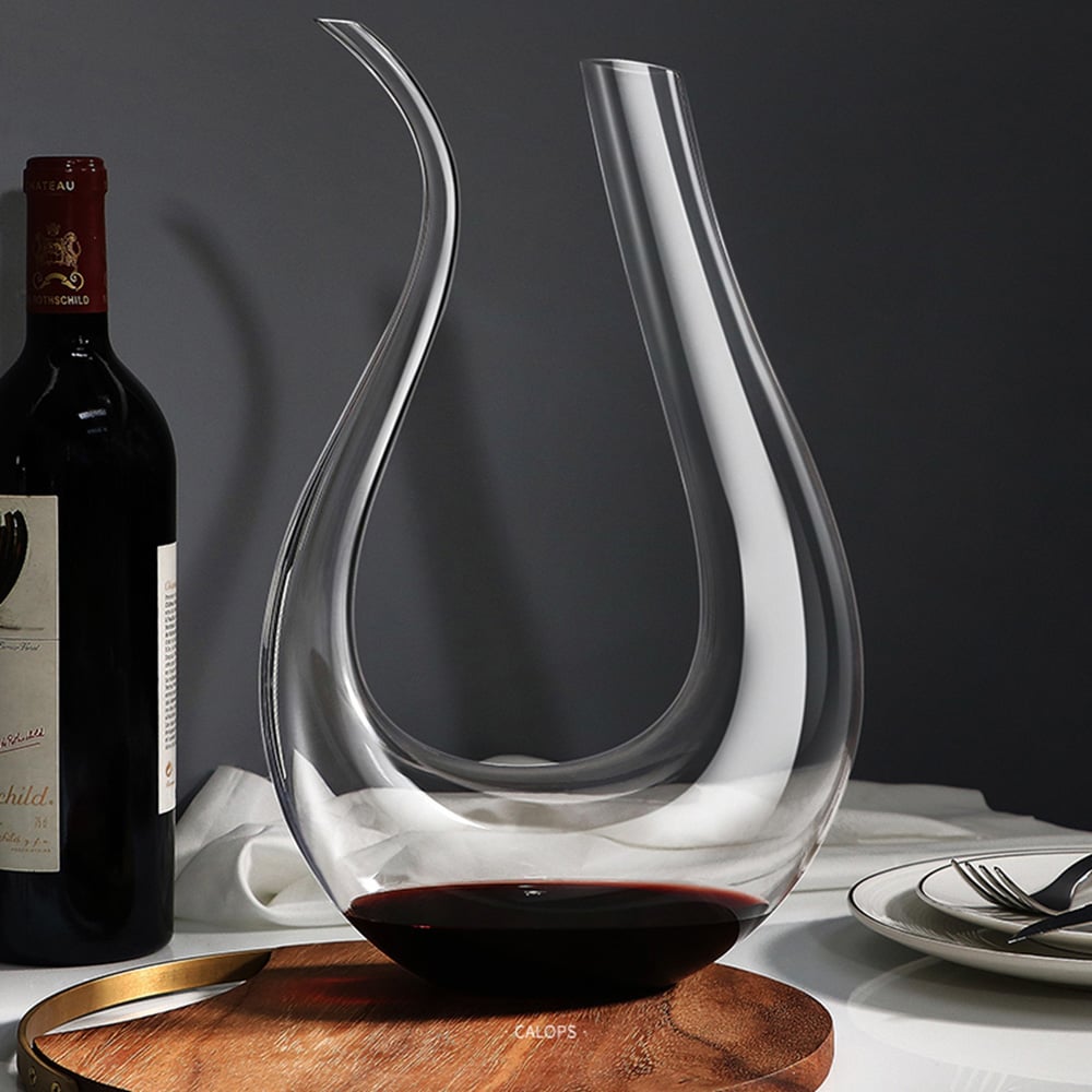 Turn wine moments into a celebration with an eye-catching U-shaped decanter that brings out the best in your favourite reds while making every pour a pleasure. Handcrafted from borosilicate glass, its unique form maximises aeration, enhancing both aroma and flavour for a richer tasting experience. Dual openings offer smooth, balanced pouring from either end, so entertaining feels seamless and sophisticated. Perfect for dinner parties or gifting, each decanter is one-of-a-kind, adding a sculptural touch to any table.