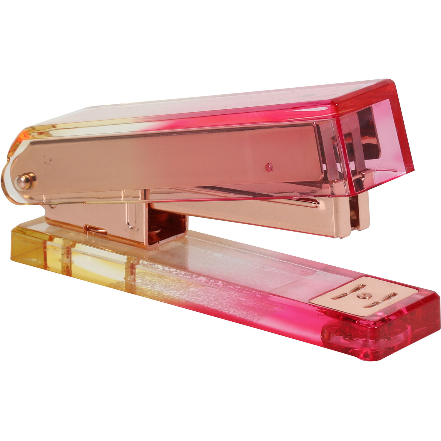 Stylish yet functional, this Gradient Stapler will help you safely join papers in style. Made using iron and acrylic, it features a beautiful pink and yellow gradient finish with a rose gold mechanism to complement the look. Easy to use, it'll make a practical addition to your home or office stationery supplies.