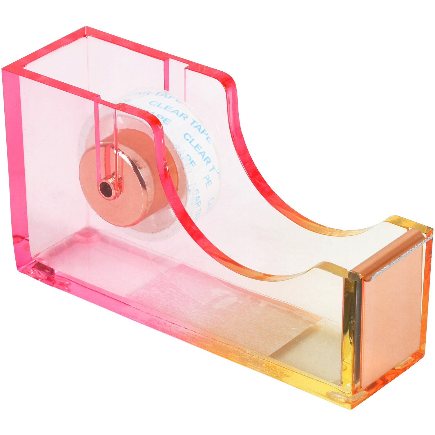 This beautiful Gradient Tape Dispenser is the perfect thing to dispense the tape in a hassle-free and safe way. It features a lovely pink and yellow gradient finish with a rose gold metal holder for a stunning look. Complete with an easy-to-remove tape holder, it's an essential stationery device for your home or office.