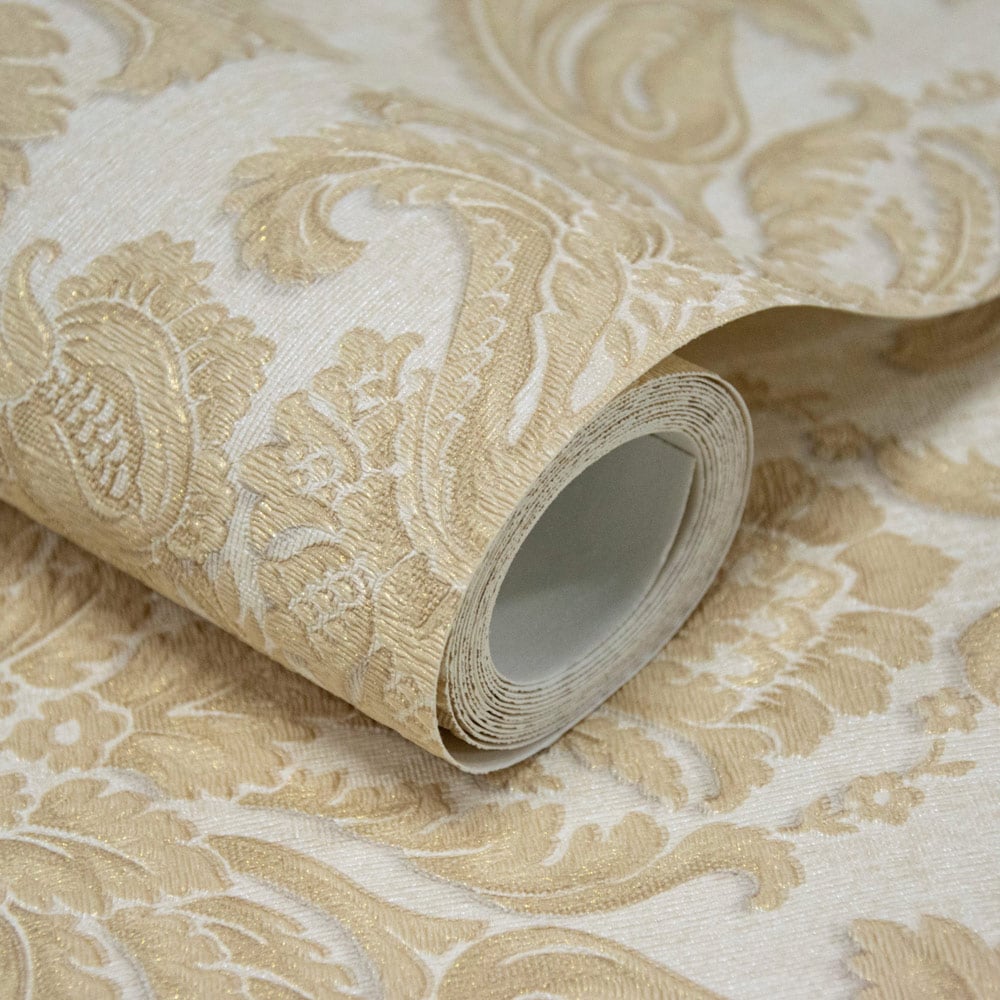 Stunning and sophisticated, the Grandeco Atessa Luxury Embossed Damask Wallpaper in gold is a classic ornamental damask with subtle shine glinting across the motif and background. Its pattern-matching emboss instantly injects depth, dimension, and luxury into your home. The glamorous but neutral colour pallet makes this design ideal for a feature wall or running throughout a room. This wallpaper features luxury weight with a textured mica finish and is perfect to use as a feature wall or use on all four walls. Easy to apply using the paste-the-wall method, it will also help cover cracks and minor imperfections.
