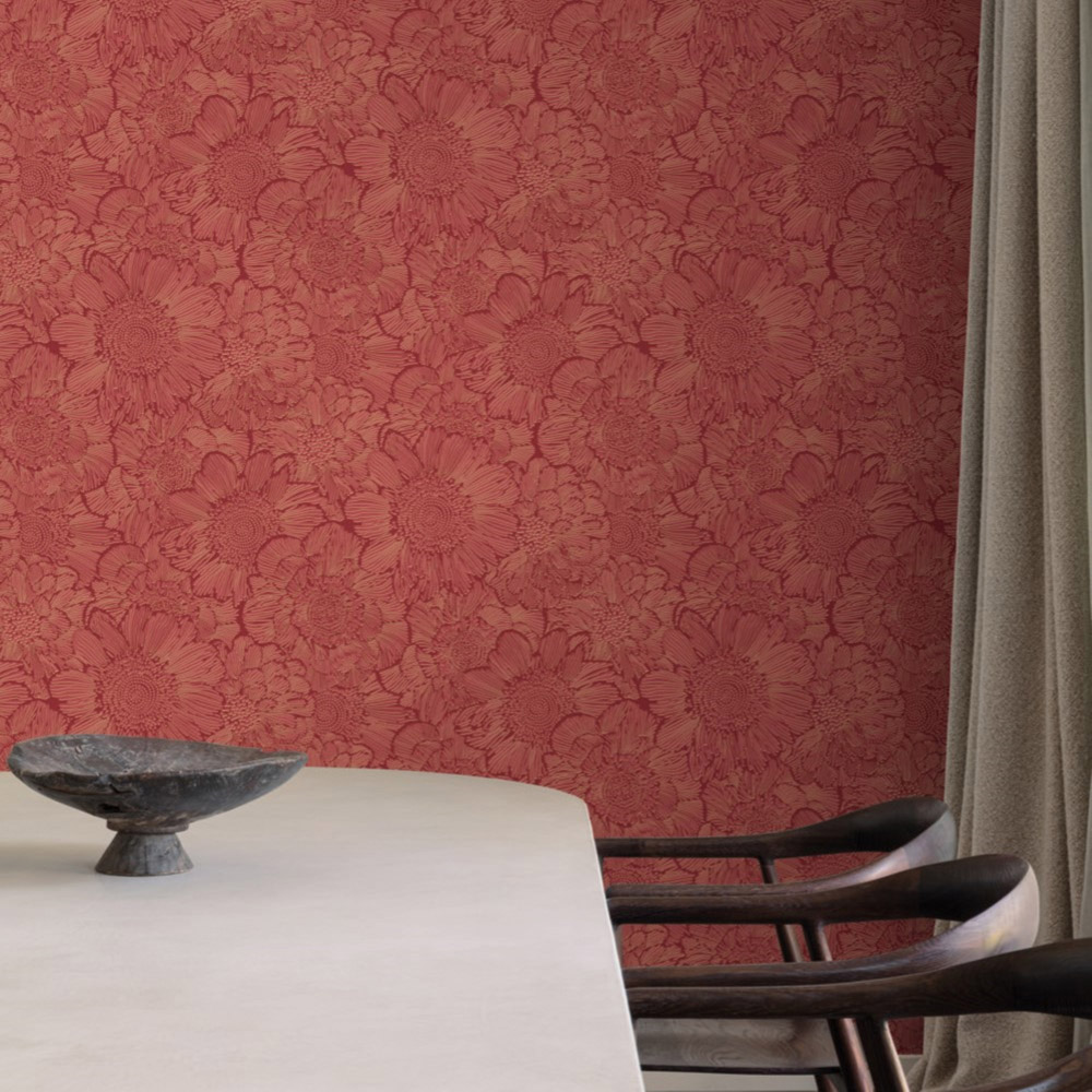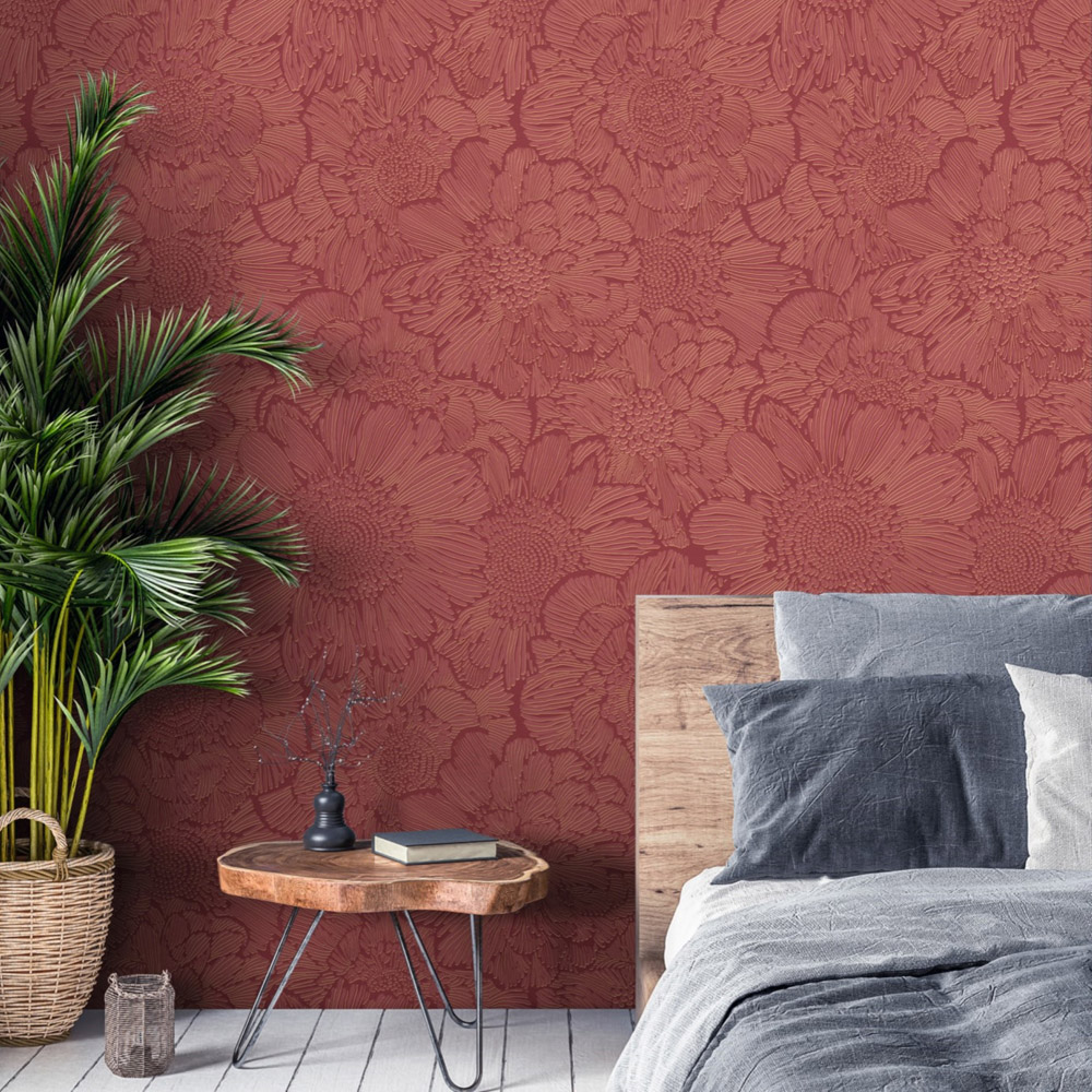 Make your plain home walls fun with the Grandeco Blown Vinyl Flora All Over Modern Florals Red Wallpaper. This wallpaper features a subtle floral design to add a playful and stylish touch to your home. The monochrome finish of red, green and grey makes the design look peaceful and colourful. The combination of textures and golden accents form a graceful pattern. This wallpaper fits as a special accent in any room of your house. This no-mess wallpaper eliminates any hassle of the pasting table. The Paste the Wall wallpaper allows you to apply the paste directly onto your walls.