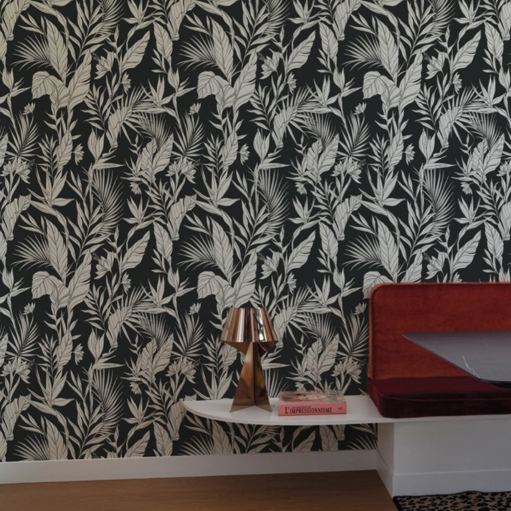 Elevate your living space with the Grandeco Glistening Lucia Tropical Foliage Black Vinyl Wallpaper. This wallpaper design from the Omura collection is truly stunning, drawing inspiration from delicate Japanese organic elements and incorporating shimmering mica details. It reflects the lush flora found in Japanese gardens, featuring elegantly shaped leaves that stand out against an off-white pearly background, creating a beautiful contrast. With the paste-the-wall application, you can say goodbye to the hassle of a pasting table; simply apply the paste directly onto your walls for a clean and easy experience. Pattern Number: A71103. Application: Paste the Wall. Roll Length: 10.05m. Roll Width: 53cm. Pattern Repeat: 64cm. Pattern Match: Straight Match.