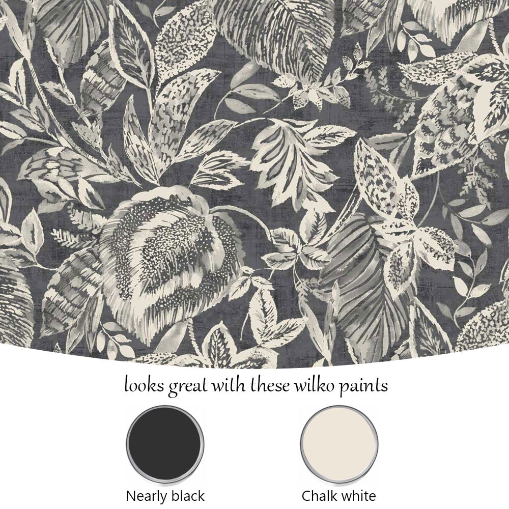 This Grandeco Mae Jungle Leaves Charcoal Black Wallpaper showcases beautiful leaves in striking colours, creating a wild bouquet on your wall. You really can do anything with this wallpaper, the dark shade gives your home a cosy yet elegant atmosphere. Plunge into a sea of emotions which reflect your mood of the moment and let your walls come to life in your style. Being washable, it is suitable for bedrooms, living rooms, kitchens, bathrooms or a nursery. Application: Paste the Wall. Design Match: Straight. Design Repeat: 53. Roll Length: 10.05m. Width: 53cm.
