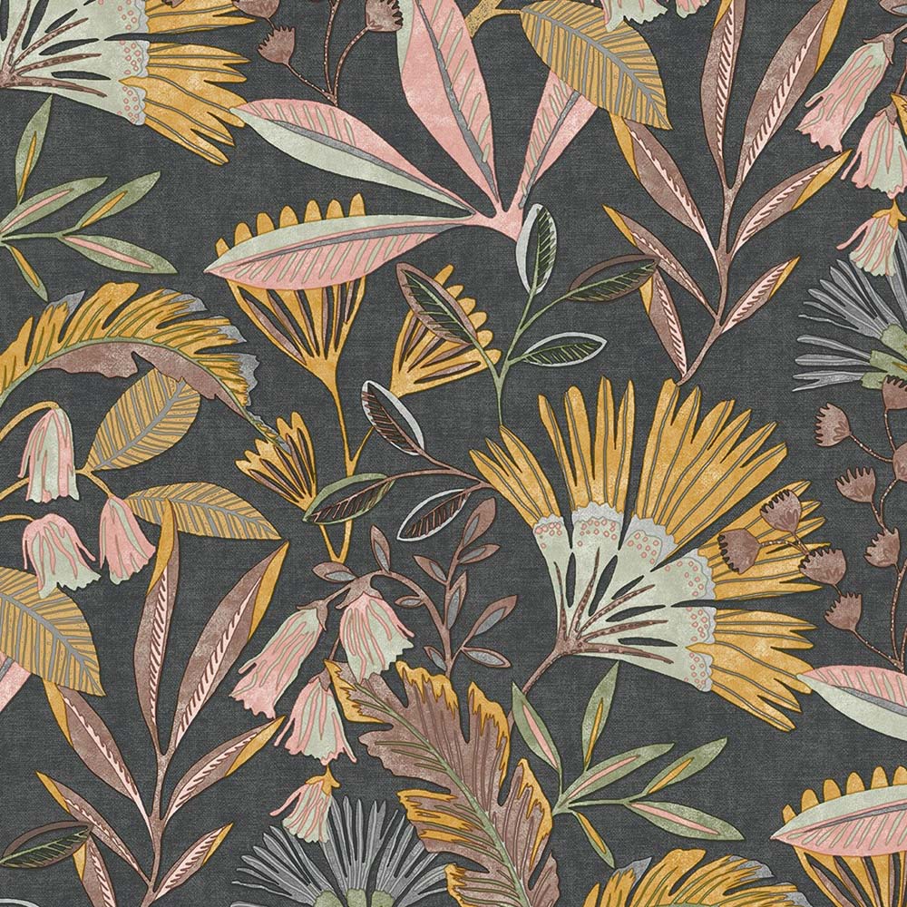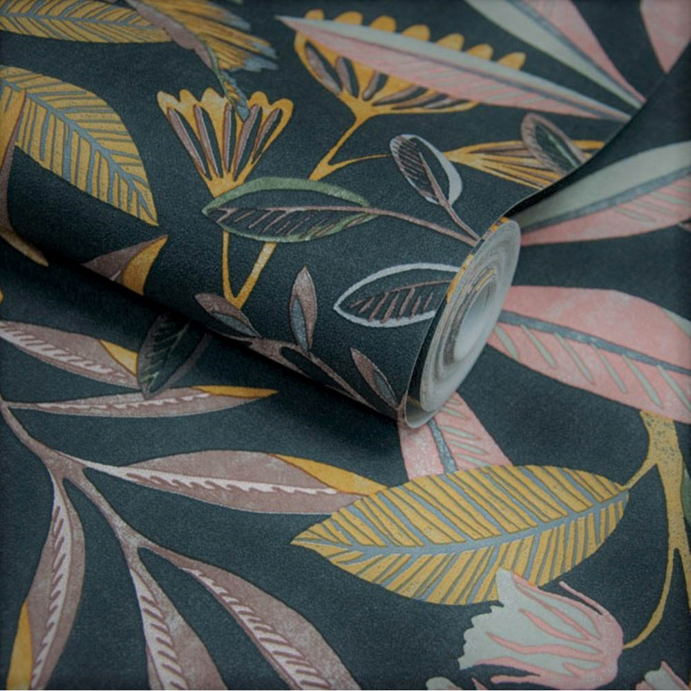 Experience the beauty and versatility of Grandeco Matisse Tropical Leaves Textured Black and Pink Wallpaper. This stylish wallpaper puts a smile on your face! The wallpaper adds bright tones of orange, green and blue to your interior. The flowers and leaves on this vinyl wallpaper are refined and playfully designed and add a lovely accent to any modern interior. Application: Paste the paper.