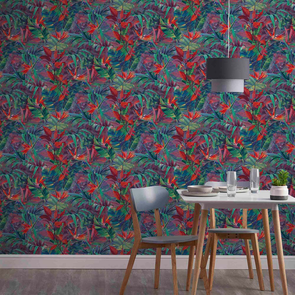 Make a bold design statement with this textured Grandeco Red and Green Paradise Jungle Painted Flower Textured Wallpaper that combines bird-of-paradise flowers with brightly-coloured painted leaves in stunning detail. Guaranteed to add the wow factor to every interior, it will help cover cracks and minor imperfections on the wall while its embossed finish will add depth to them. Plus, the paste-the-wall wallpaper method offers no soak and no mess application.
