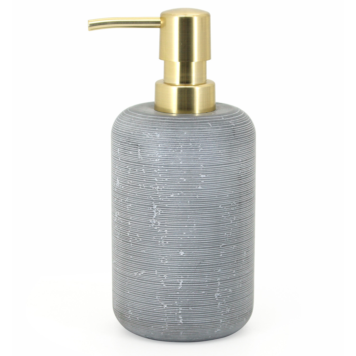This Granite Soap Dispenser is a practical and contemporary addition to your bathroom. Perfect for storing lotions or liquid soap, it has an industrial concrete appearance, elevated by an opulent gold pump. Pair it with the matching accessories for a modern bathroom aesthetic.