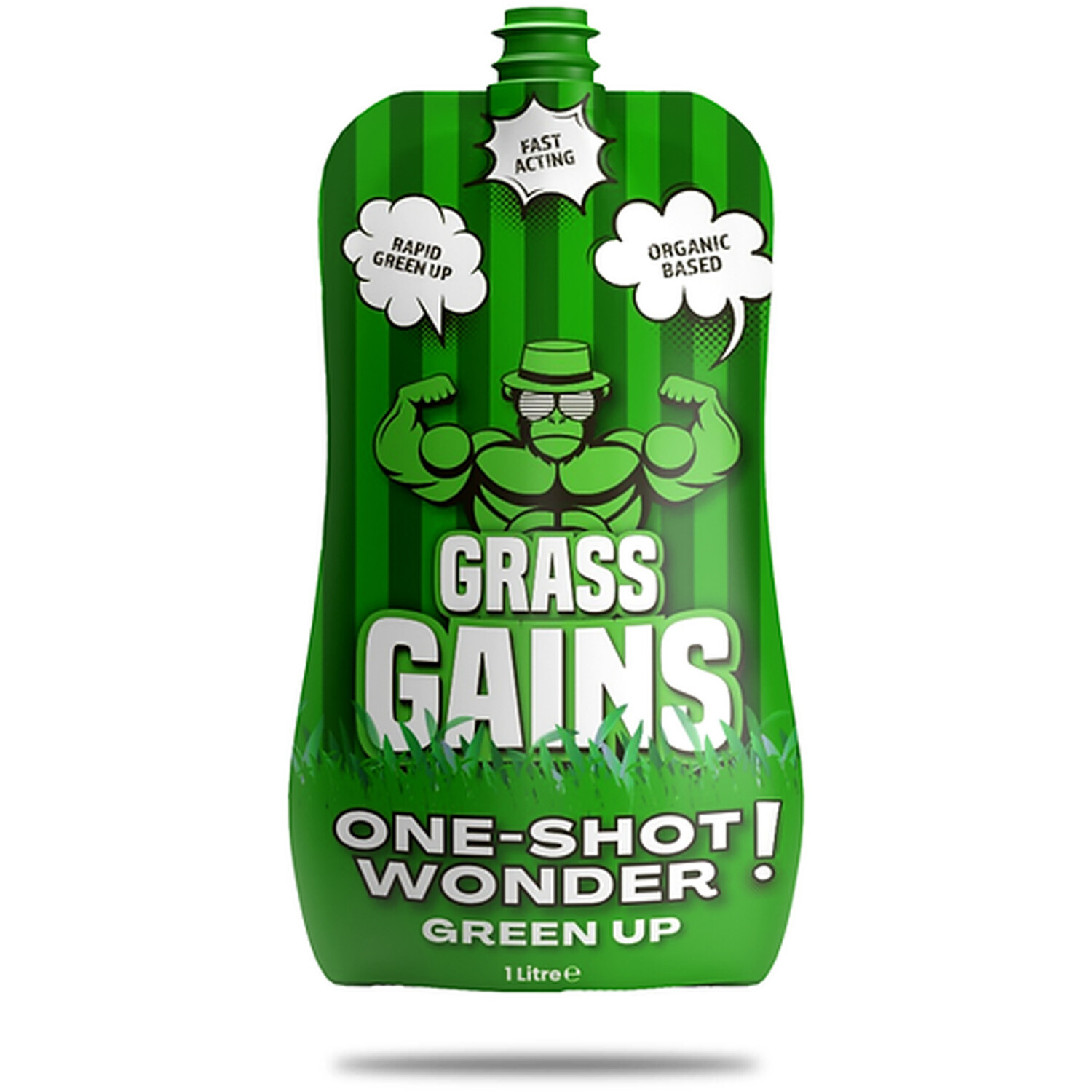 Revitalise your lawn with the Grass Gains One-Shot Wonder Liquid Fertiliser 1L. This liquid fertiliser boosts moisture levels deep within the root system, brightening grass within 24 hours of application. Fast acting and organic, it's perfect for making your grass lush green effortlessly.