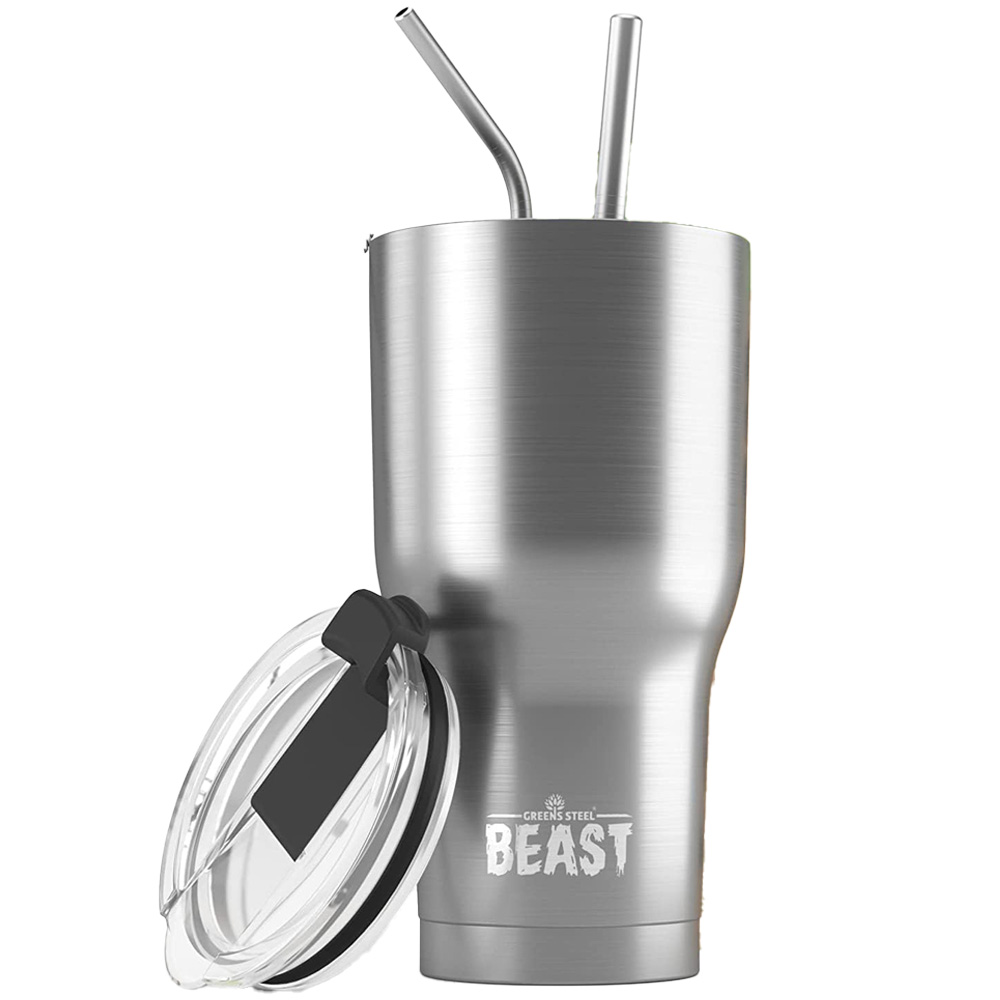 Green Steel Silver Reusable Stainless Steel Insulated Tumbler 30oz
