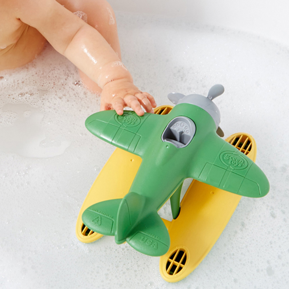 Enjoy an exciting adventure in the sky or out at sea with Green Toys Kids and Yellow Seaplane. This sustainable green and yellow water toy features a spinning propeller and chunky oversized pontoons perfect for coasting into any port. Made in the USA from 100% recycled milk jugs, this seaplane is safe and non-toxic, containing zero BPA, PVC, phthalates or external coatings. Specially designed to float when taken into the bath or pool, young captains can easily navigate from water to air and back again.