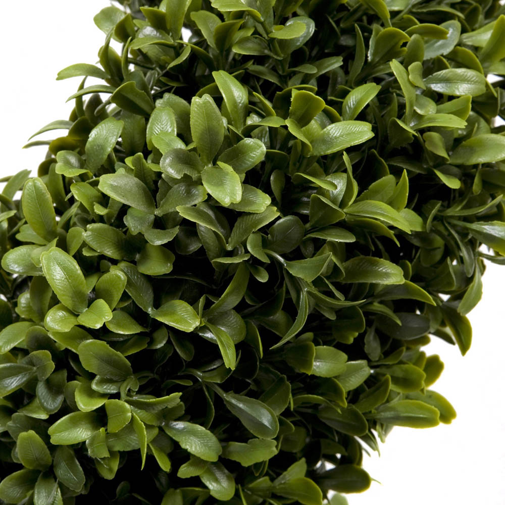 Add a green lush in any space with the GreenBrokers Artificial Boxwood Spiral Tree. This classically shaped artificial boxwood spiral tree is extremely lifelike and realistic looking. From a short distance, it's hard to believe they are not real. Easy to maintain, it is perfect if you don't want the hassle or have the time to care for living plants. The tree simply looks perfect all year round. Suitable for outdoor use, the foliage is UV protected to prevent the colour from fading. Perfect for quick designing, the tree looks absolutely fantastic on either side of entrances, doorways, on the balcony, outside shop fronts, offices and receptions as well as bars and restaurants. For an extra stylish look, plant the tree up into large planters or tubs (sold separately). Fill the bottom with heavy material such as sand or stones to prevent the tree from being blown over in strong winds. Then fill with a material that can be compacted such as ordinary soil up to the level you want the tree to sit in the planter. Place the tree in the middle and fill it to the top and compact hard around the plastic pot and the base of the tree. Sturdy and long-lasting, this artificial tree has a strong solid wood centre, making it robust and durable. Size: 90cm tall.