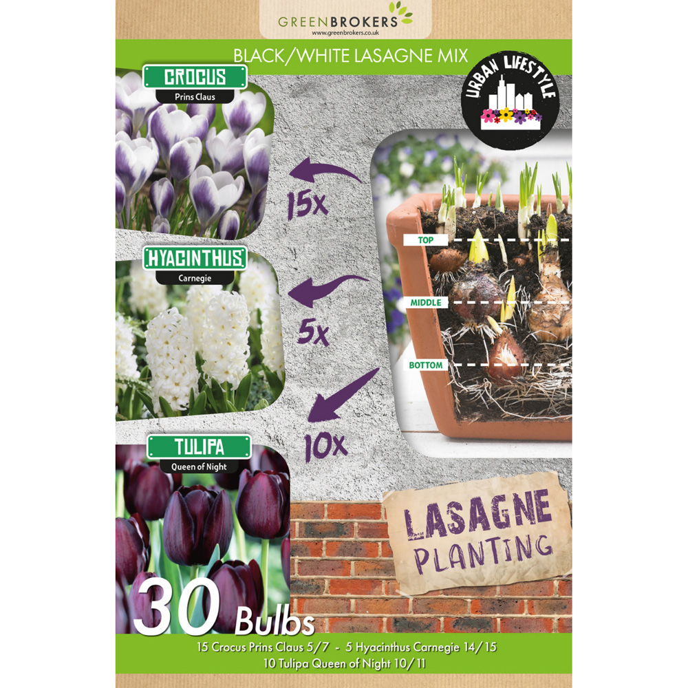 Bring a bold contrast to your spring garden displays with a bee friendly lasagne bulbs mix that features thirty Dutch bulbs in dramatic black and white tones, perfect for UK gardens and pollinators. Enjoy the ease of layered planting in containers or flowerbeds, as each bulb variety comes individually packed and labelled for simple identification, while a large colour card offers straightforward planting and care instructions. Presented in a sustainable kraft paper gift bag with a handy carry handle, this spring flowering black and white bulb mix is designed to attract bees and butterflies, making it a thoughtful gift or a delightful addition to your own outdoor space.
