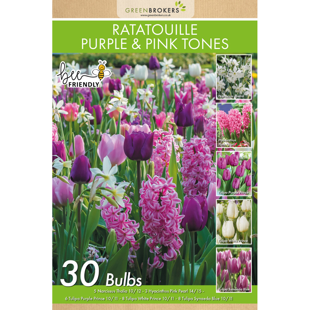 - Mix includes 30 Dutch bulbs in purple, pink and white tones