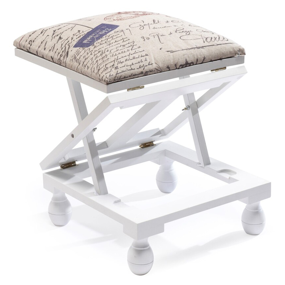Relax in style with the Greenhurst 3 Position White Footstool. This elegant footstool is crafted from premium quality solid wood and adorned with a printed polyester fabric-covered padded top. You'll love how easy it is to match this footstool with your existing furniture. The factory-assembled frame ensures stability and durability, while the screw-in-turned wooden bun feet with protective pads affixed to the base offer excellent support. Experience maximum comfort and style with the three adjustable positions (20, 32, and 39cm) this footstool offers.