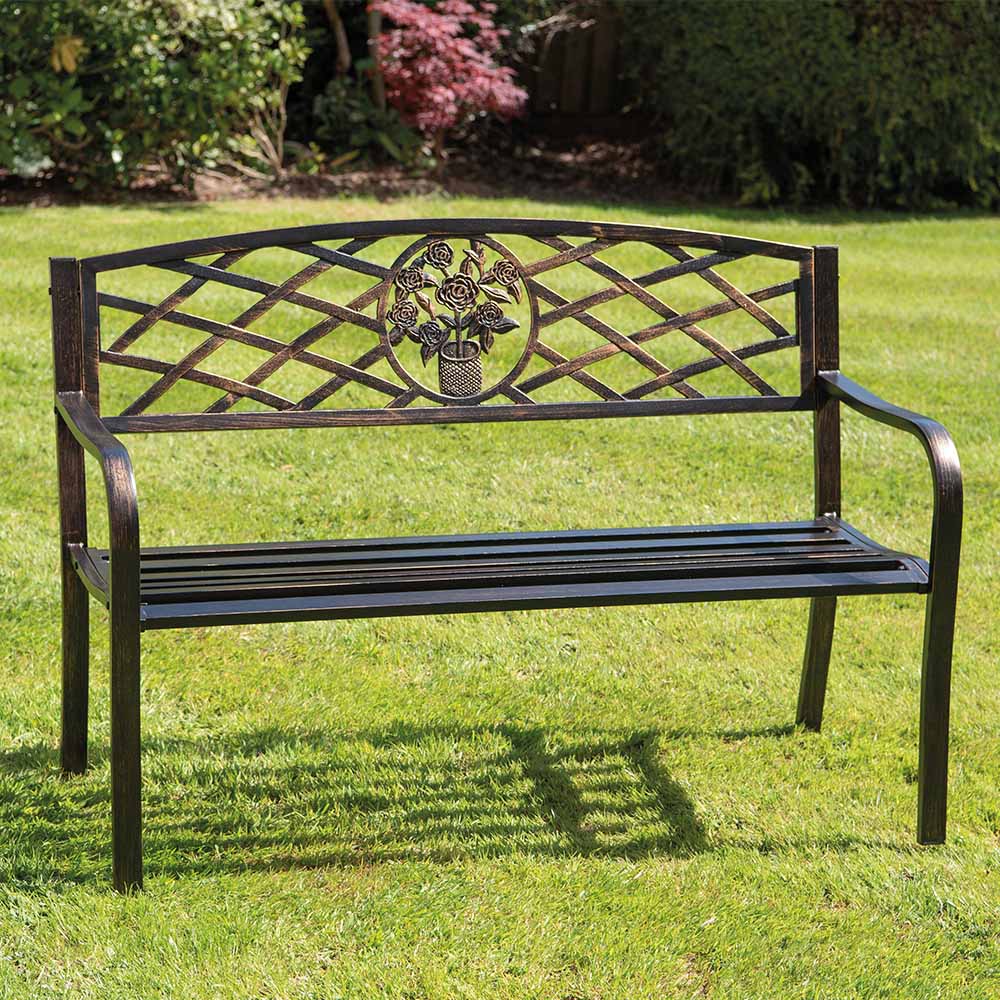• Galvanised garden bench in bronze finish