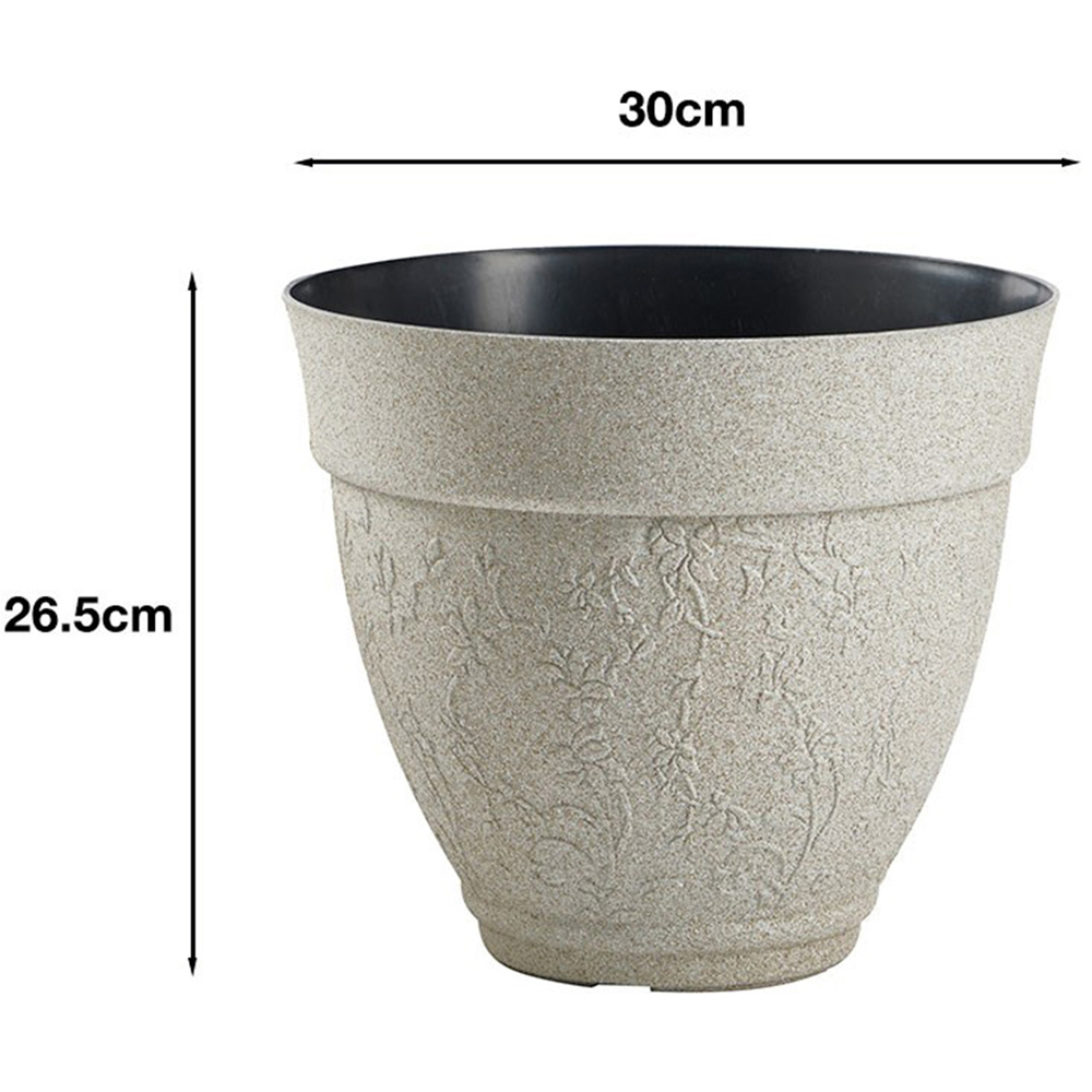Add a touch of style to any garden, patio, balcony, or terrace with these Greenhurst Planters featuring a stunning floral design sandstone effect textured planters. Available in a pack of three, each planter will complement any traditional and modern garden with elegant style. Manufactured from UV-stabilised polyurethane, they are highly durable, lightweight, and weather resistant ensuring a practical and maintenance-free planter that will retain its attractive appearance all year round. Size 30 x 30 x 26.5cm.