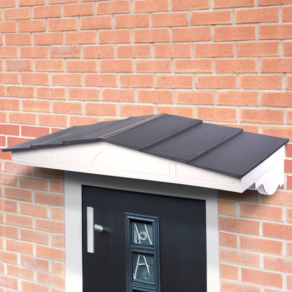The Greenhurst Low Pitch Apex Door Canopy is constructed using a blend of engineering polymers, a durable composite material commonly used in architectural features. This material possesses excellent properties for a door canopy, including a high strength-to-weight ratio and resistance to weathering, unlike timber. The canopy is pre-decorated and coated with a UV stable finish to protect against colour fading caused by sunlight. Additionally, there is no need for ongoing redecoration, saving time and effort. It is designed to fit over standard-width UK front doors and comes with wall fixings and a drill bit for easy home assembly. The overall size of the canopy, including brackets, is H27 x W108 x D45cm, with a measurement of 98cm between brackets.