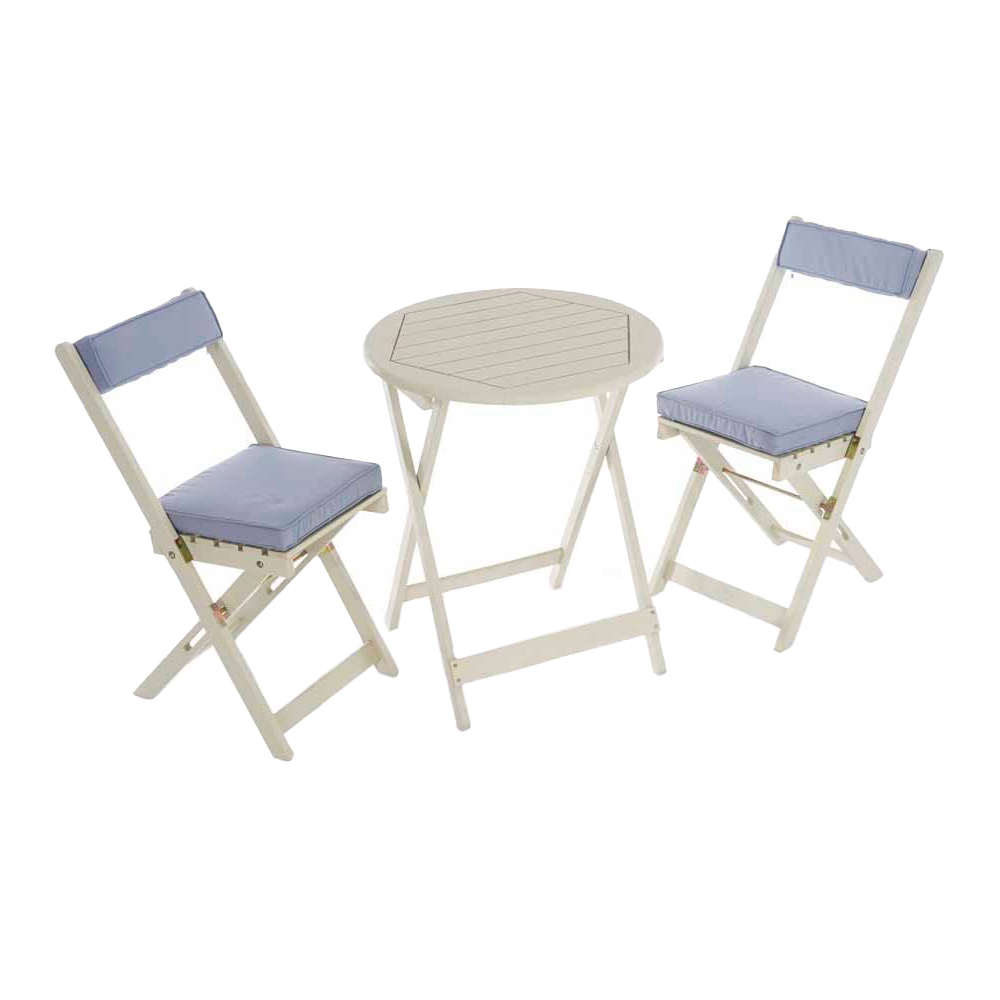 The Raffles bistro set is a high-quality furniture set crafted from solid Acacia, a smooth, natural hardwood with very few knots. Acacia is a hardwood renowned for its extreme hardness and resilience to weathering. The bistro set makes a perfect addition to any garden, so you can enjoy lazy days relaxing in the garden or catching up with friends. It is hand-oiled in a forest white finish. Chairs come with attractive and detachable colour coordinated grey 5cm deep padded cushions. Cushion covers are polyester made and are weather-resistant. The cushion covers are removable for washing. The set includes a round folding table with two folding chairs. The table size is H72 x 60cm in diameter. Folds flat for storage to 98 x 5.5cm. Chair size is H78 x W38 x D34cm and folds flat for storage to 91 x 5.5cm. Protect your garden furniture with our durable and waterproof covers. Explore our wide range of heavy-duty Garden Furniture covers to find the perfect fit for your needs.