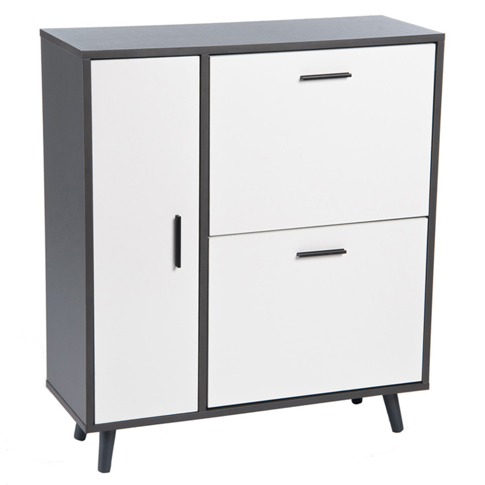 Greenhurst Single Door 2 Drawer Grey and White Shoe Cabinet