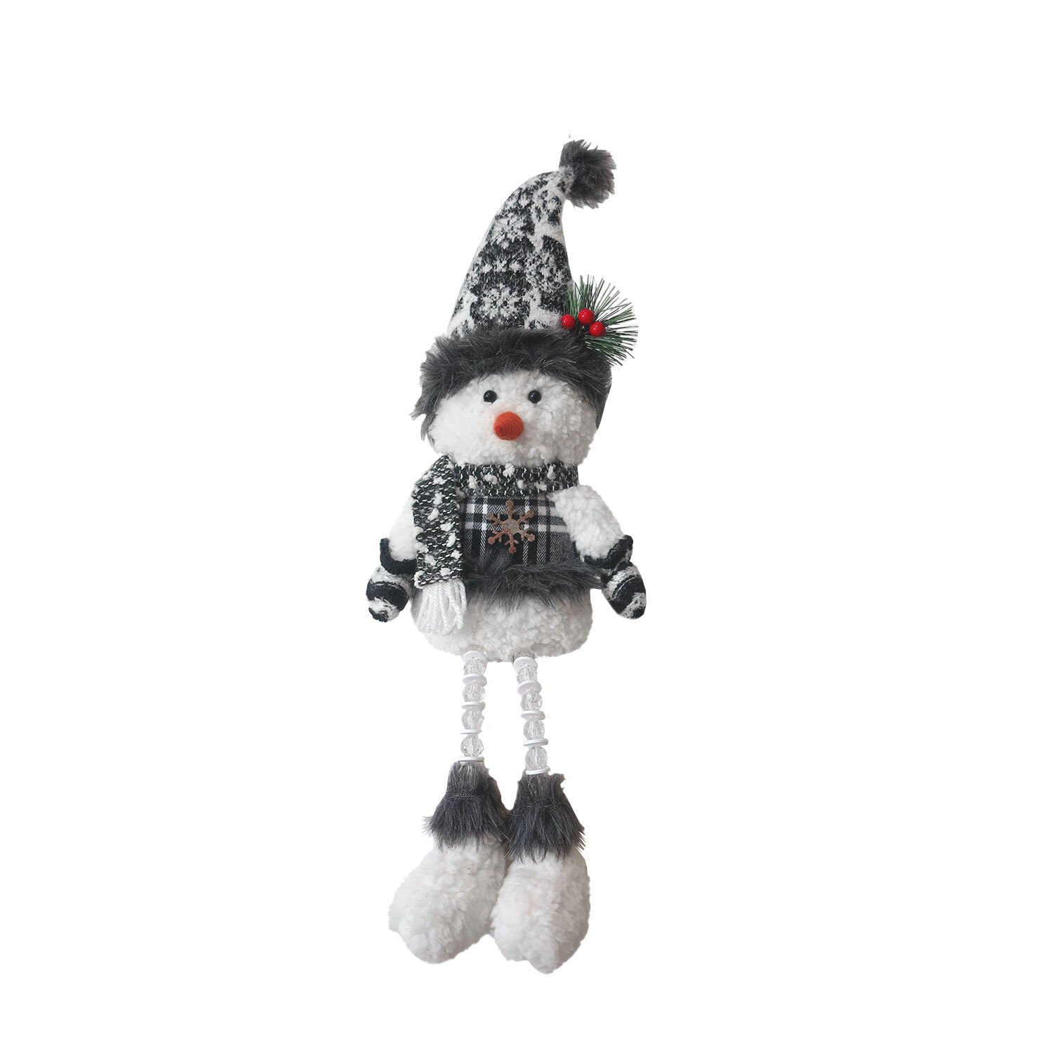 Place this Grey Check Shelf Sitting Snowman on any bookcase, mantelpiece or shelf to create an adorably festive atmosphere. In grey and white colours, this sitting snowman features long legs, a checked jumper and is wearing an adorable Santa hat.