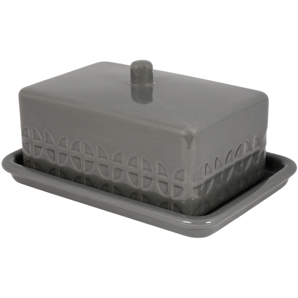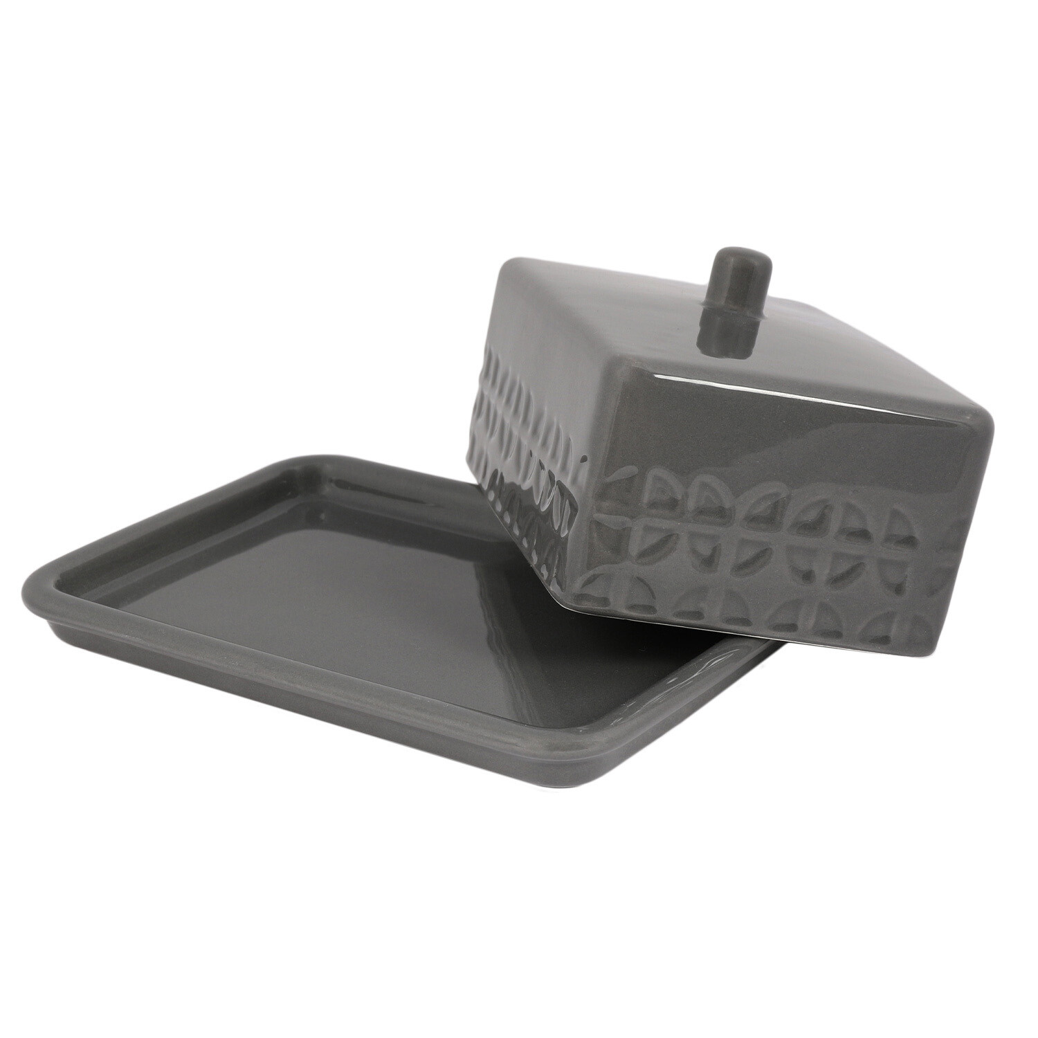 The Geo Debossed Butter Dish has a sleek and stylish abstract repeating pattern reminiscent of 60s and 70s retro design. The butter dish is ideal for storing your butter for easy access when buttering your toast in the morning and will bring an element of modern style into your space. It will coordinate with other items in the Geo Debossed collection for a cohesive look in your kitchen and dining area.