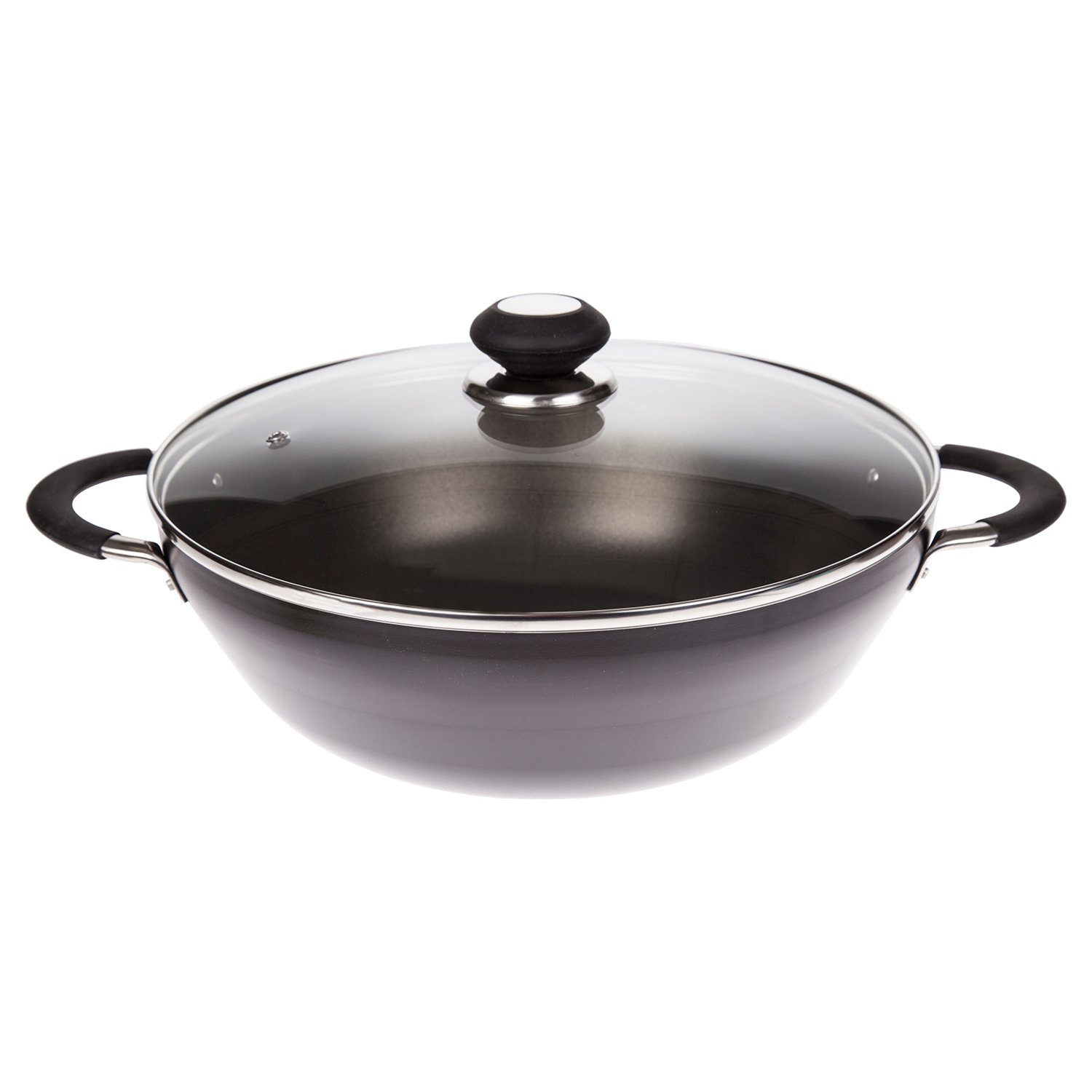 Make cooking easy with this Teflon Stir Fry Pan. This pan features the industry standard durable non-stick Teflon surface, as well as a vented lid system to help cook food quicker. This pan comes complete with ergonomically designed plastic handles, making it perfect for cooking up a wide variety of meals.