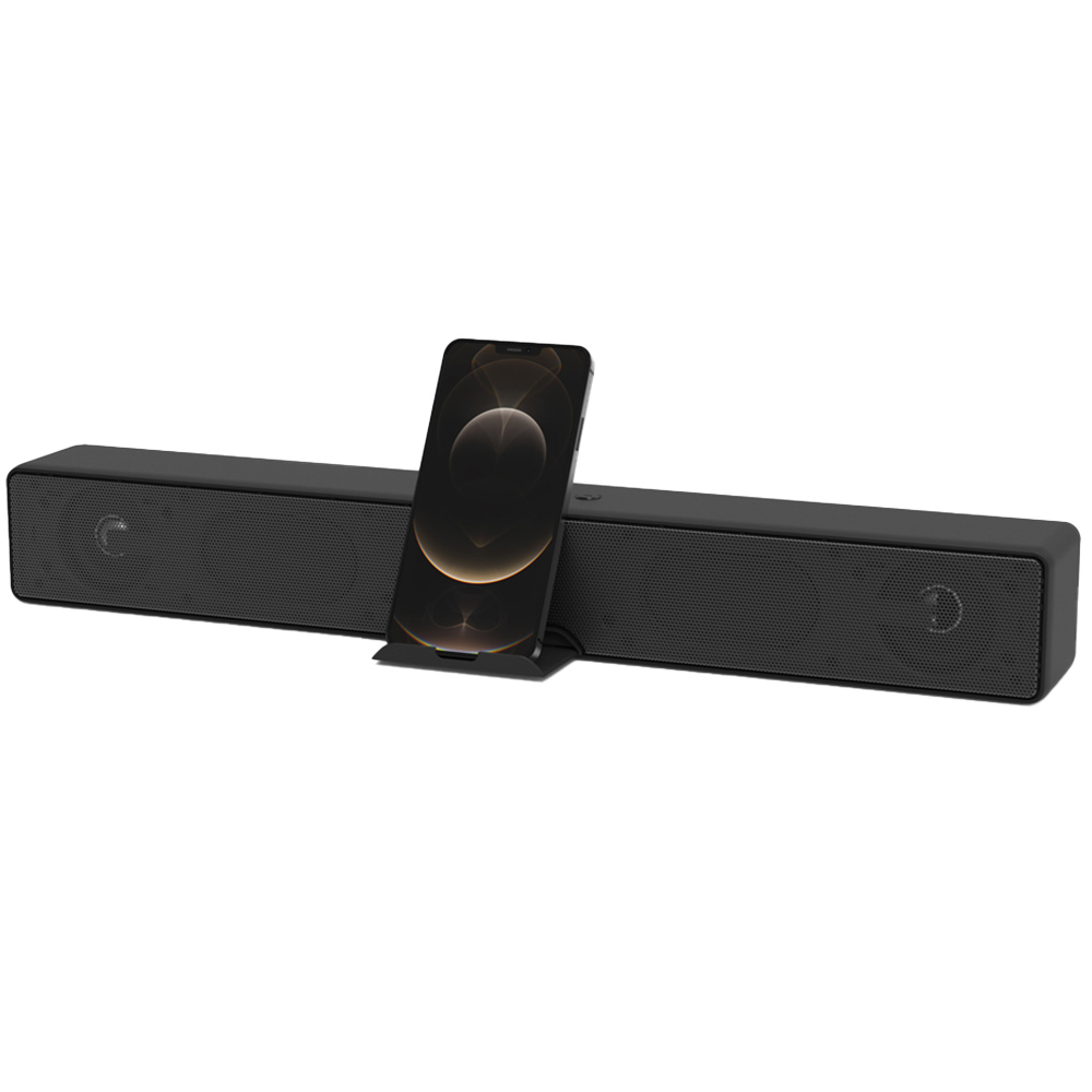 Experience audio bliss with the Groov-e Bluetooth Soundbar 20W. With two built-in 5W drivers, the soundbar produces powerful deep bass when listening to music or watching a movie and is great for video or voice calls. Plus, it also features an LED light mode. Easily connects to your PC, laptop, smartphone or tablet with Bluetooth. Crystal-clear dialogue, booming bass, and room-filling audio will elevate your movie nights, music sessions, and gaming experiences. So, why wait? Upgrade your entertainment with this powerful sound system. Music playback time is 10+ hours.