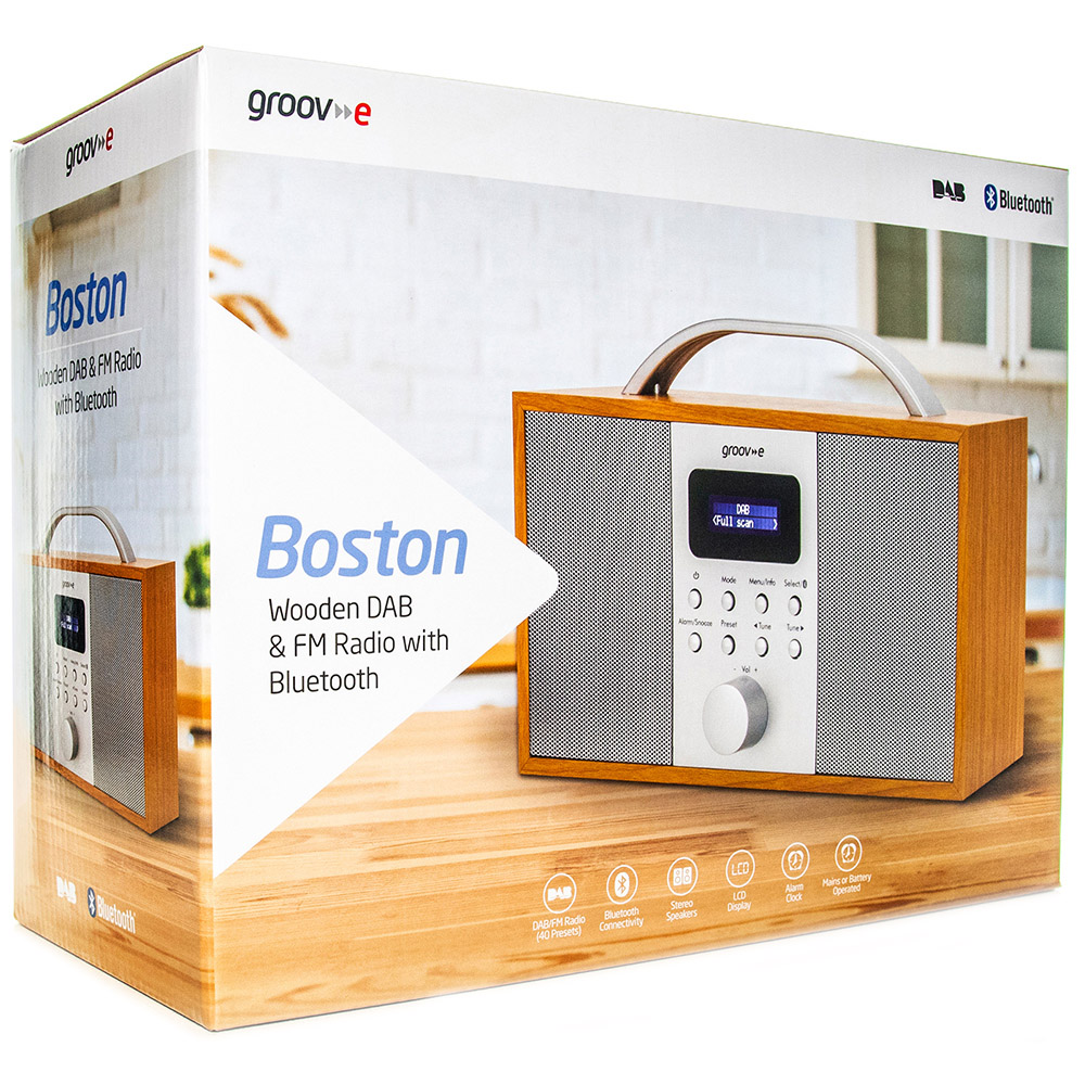 Tune in for a great day with the Groov-e Boston Portable DAB and FM Digital Radio. The wooden radio with LCD has a timeless and stylish design that looks great in any room. Boasting both a classic and retro design, tune in to your favourite stations or stream your favourite music wirelessly. It can be used both via mains and Bluetooth, which allows you to carry it all around the house as well as outdoors. Enjoy the best of both worlds with the stylish stereo speaker radio.