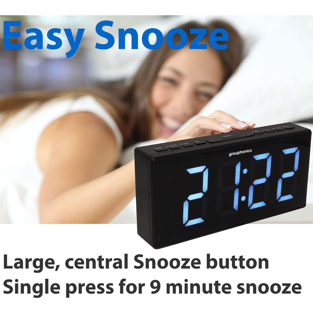 This is one of the largest displays on a standard sized bedside, mains powered clock radio alarm - if you want a large digital clock radio that is mains powered you will find the display on this hard to beat. Crystal-clear, on-screen digits stand 3” / 7.5cm tall and are combined with a contemporary bezel-less design making this clock radio hard to beat on looks or ease of checking the time. Time & alarm settings are kept in case of power outage using battery backup (battery not included).