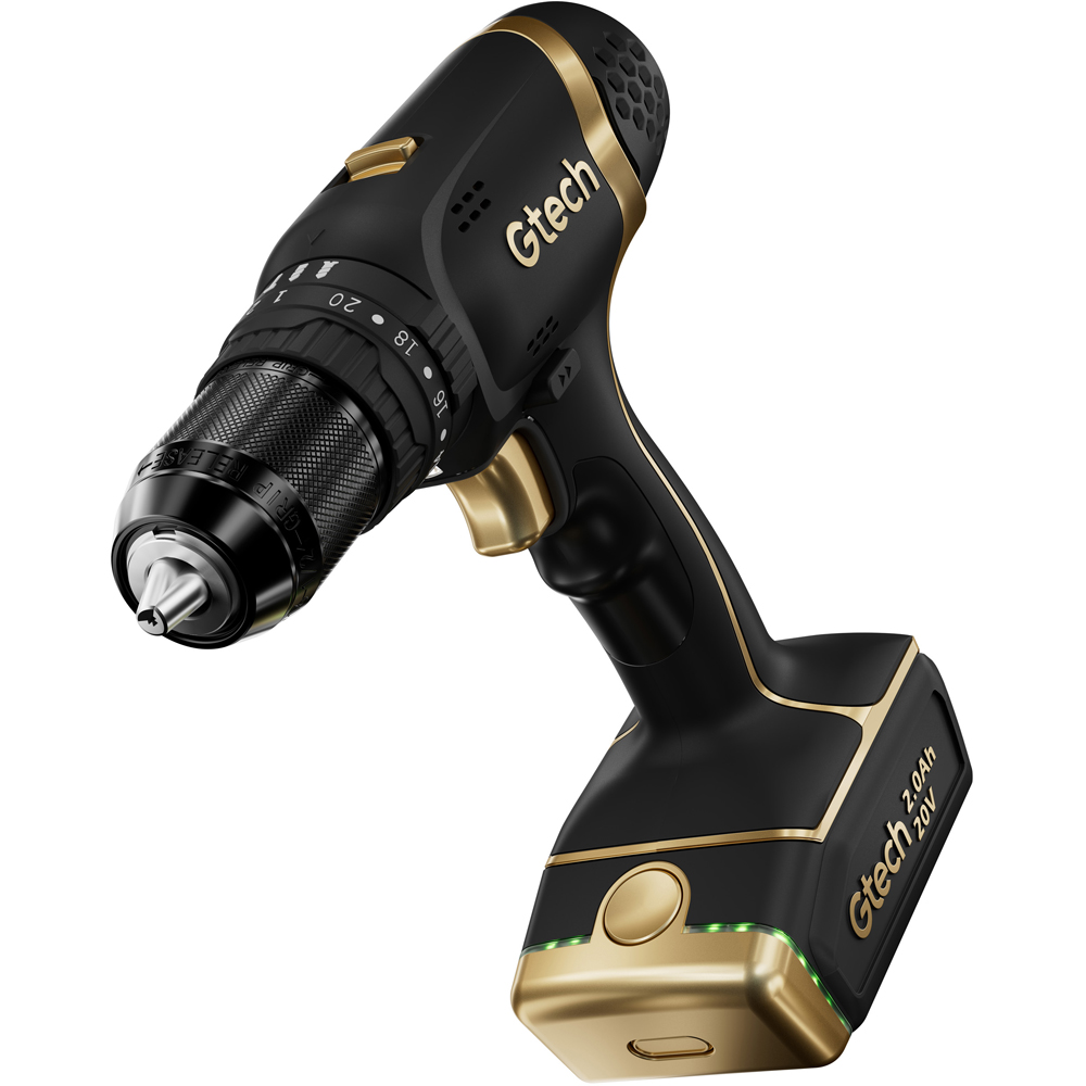 Powerful, compact and precision engineered. 20 speeds and settings to tackle multiple tasks and materials. Quickly switch between drilling, screw driving and hammering modes. Includes a 20V rechargeable battery for up to 40 minutes’ runtime, keyless chuck, LED headlight and more. Stunning design meets precision engineering in our powerful, versatile new Combi Drill. It gives you the freedom to tackle everything on your to-do list with confidence and in style. (Drill bits not included, available separately).