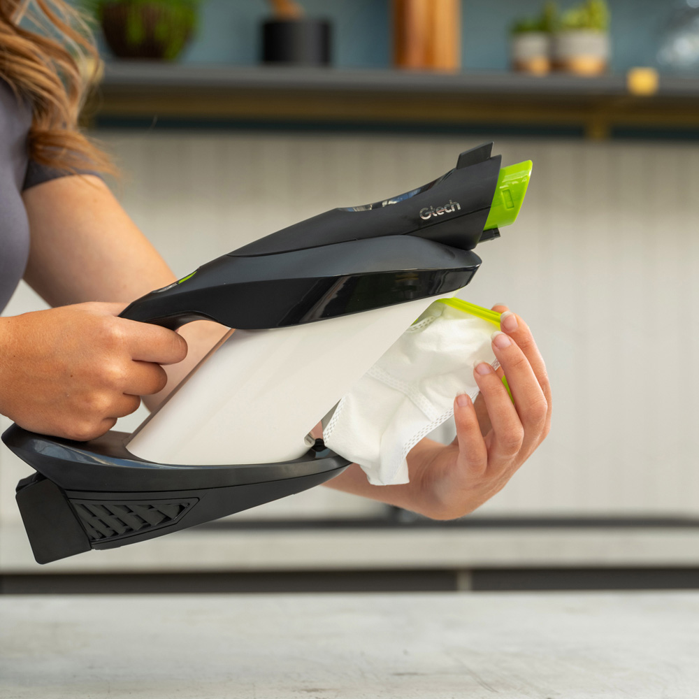 Grab and go with the Gtech Prolite Cordless Handheld Vacuum Cleaner 14.4V, the lightest-ever handheld vacuum cleaner, weighing just 1kg. Perfect for cleaning the smallest spaces, the ProLite delivers low-maintenance, hygienic cleaning. It features a 14.4V lithium-ion battery that recharges in just 2 hours, offering 30 minutes of runtime in ECO mode and 20 minutes in MAX mode. The battery is removable for added convenience, allowing you to store the ProLite while charging its battery separately. The 0.3L triple-layered dust bag ensures easy, hygienic disposal.