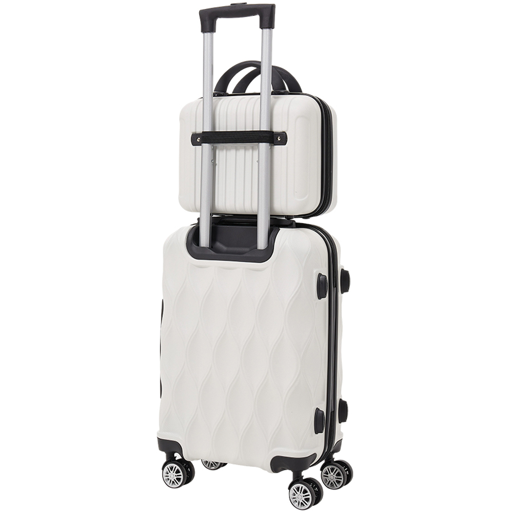 H&O Direct 2 Piece White ABS Suitcase Set with Makeup Case