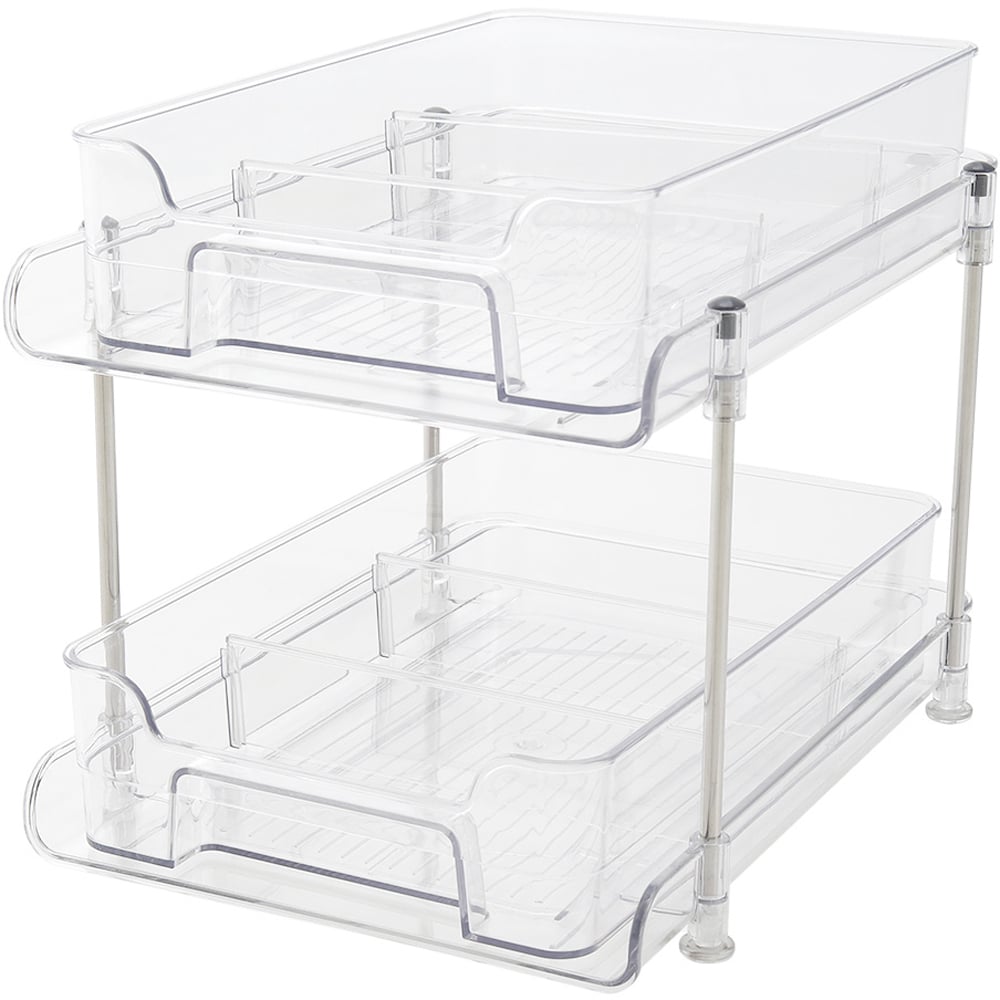 This 2-Tier Acrylic Skincare Organiser is perfect for holding skincare products, makeup and perfumes, allowing you to always know where to find them. Its clear double-tier design maximises storage while ensuring everything is easy to find and reach. With a transparent look, this organiser adds a touch of sophistication to your vanity and bathroom.