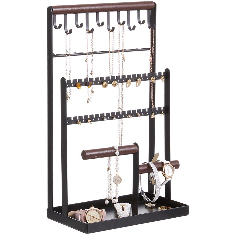 H&O Direct 3 Tier Black and Brown Metal Jewellery Display Stand