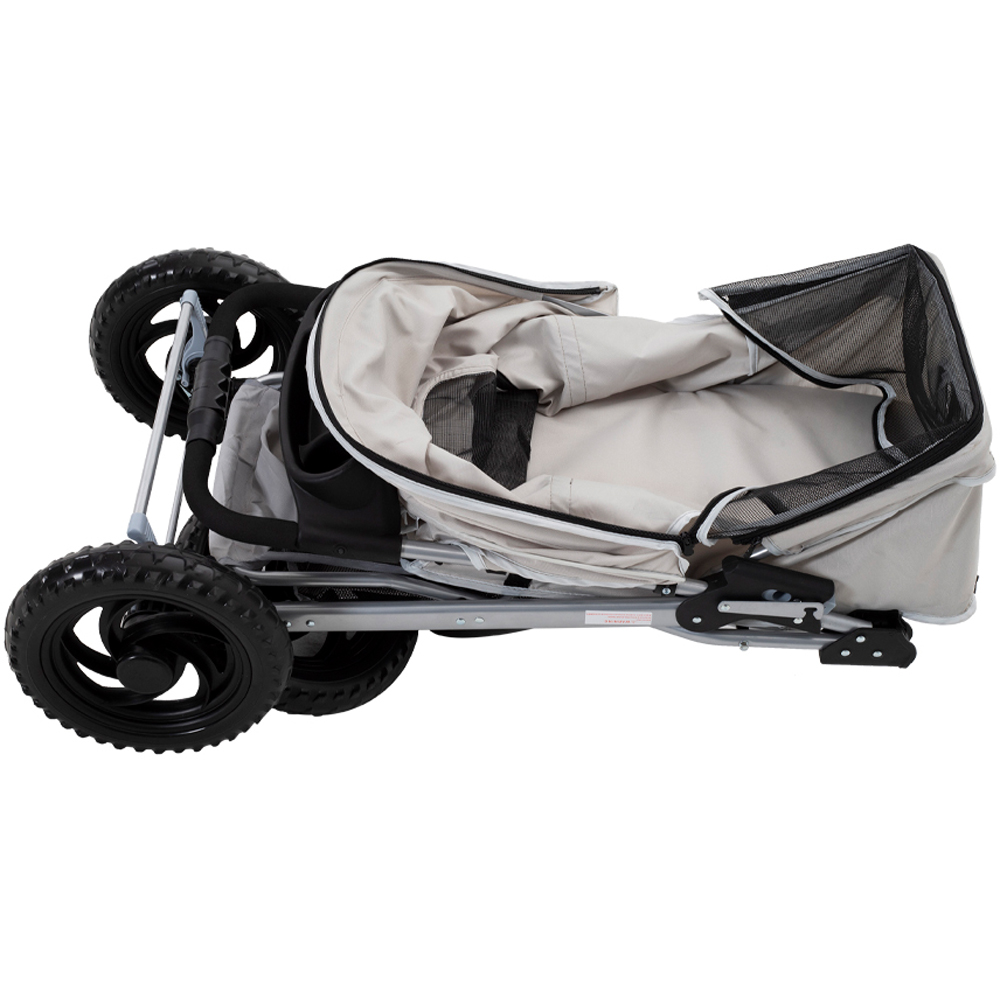 Make outings with your furry companion a breeze with this pet stroller. Designed for comfort, it features a large carrier with soft cushioning to keep your pet cosy during every ride. The mesh canopy provide great ventilation and visibility, while a built-in safety buckle ensures they stay secure. You can carry all the essentials with you with the bottom basket, and the 360° front wheels with rear brakes ensure every maneuver smooth.