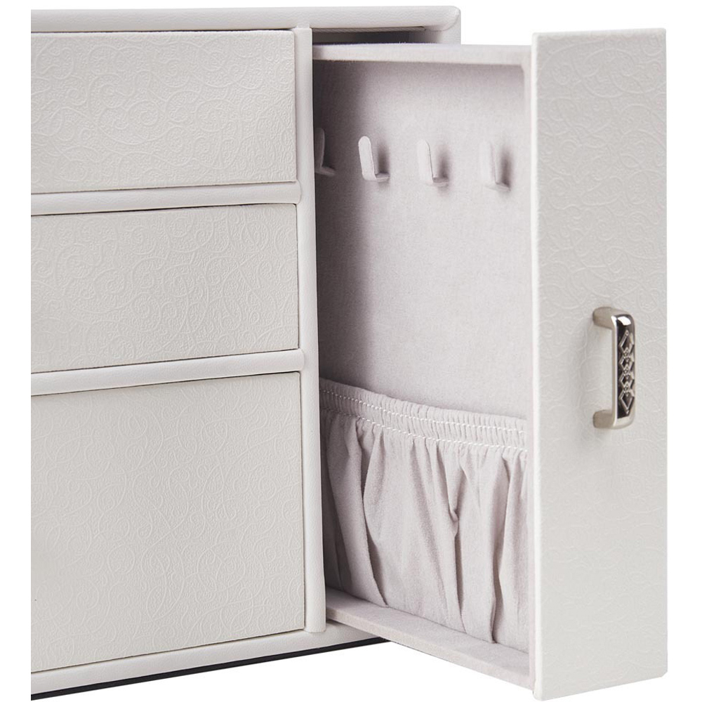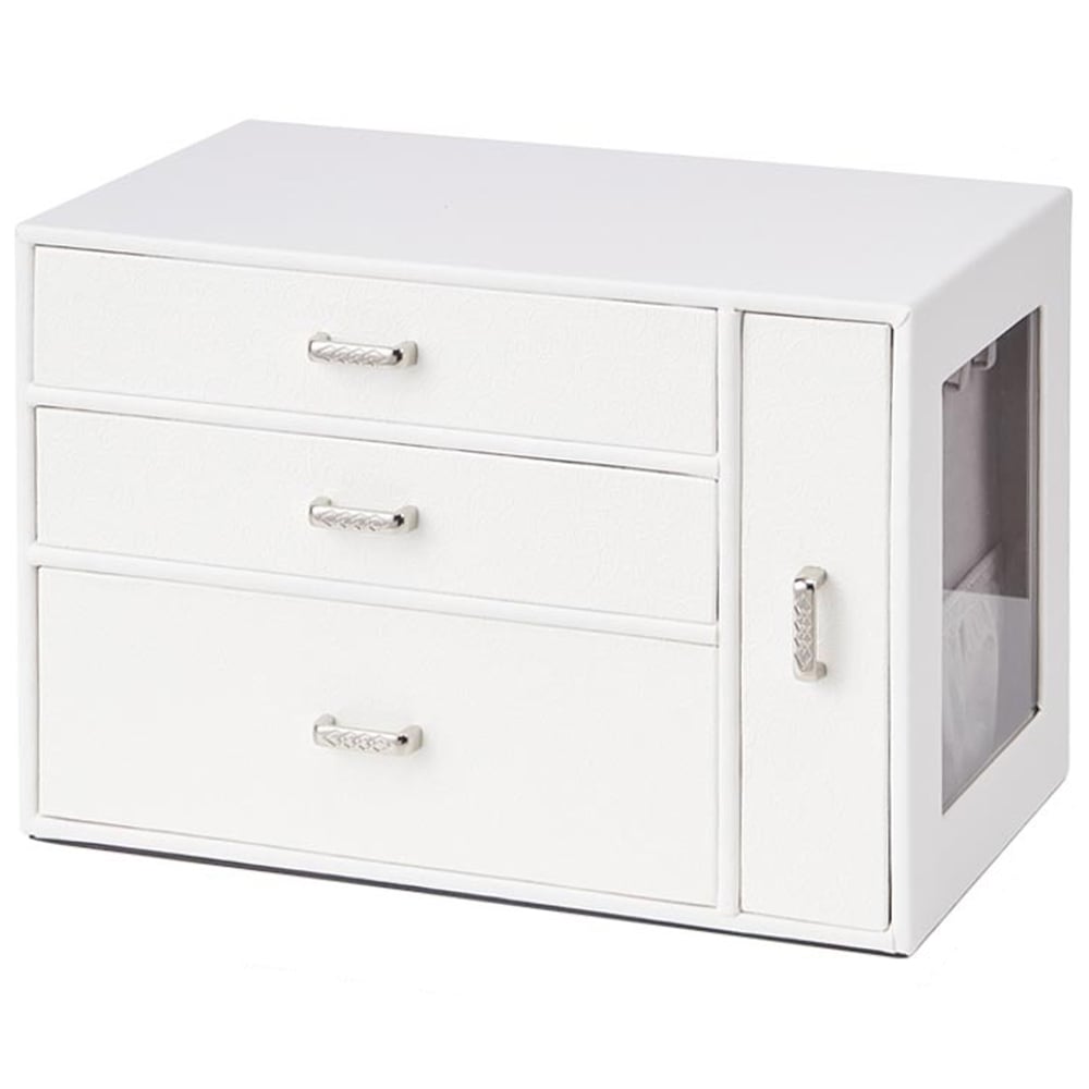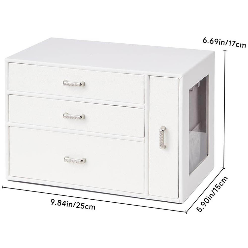 Perfect for minimalists, this jewellery box ensures your precious pieces stay in pristine condition. Featuring a sleek design with glossy drawer handles, it offers three drawers and a vertical pull-out drawer specifically for necklaces. The transparent display window on the side makes it easy to view your collection, while the space-efficient design keeps your desktop tidy and clutter-free.