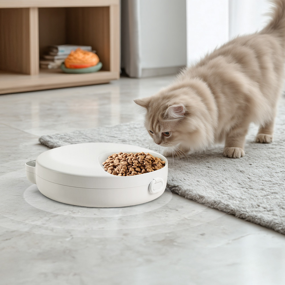 Perfect for busy pet owners, this automatic feeder makes mealtime easy and stress-free. Four separate compartments hold meals for different times or stages, while a wide opening lets pets eat comfortably. You can set feeding schedules to keep routines on track. Two ice packs keep food fresh longer, and the clear screen shows battery life so you’re never caught off guard.