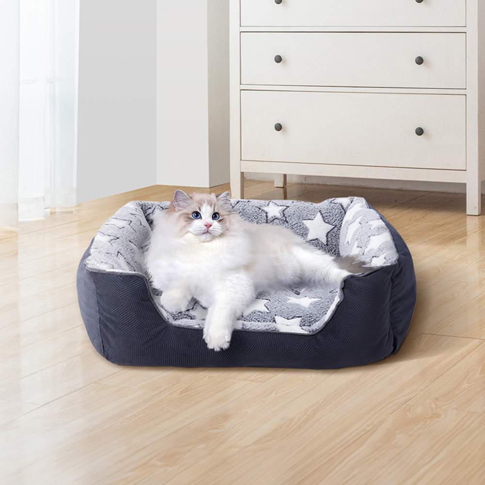 Provide your pet with a snug place to rest with this star-print bed. Designed with raised sides, the bed creates a secure feel while gently supporting your pet. Crafted with soft corduroy on the outside and plush fabric inside, it’s designed to keep your pet warm and comfortable no matter how they lie. Adorned with eye-catching star patterns, this bed doesn’t just keep your furry friend happy—it also adds a touch of charm to your home.