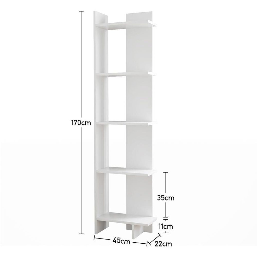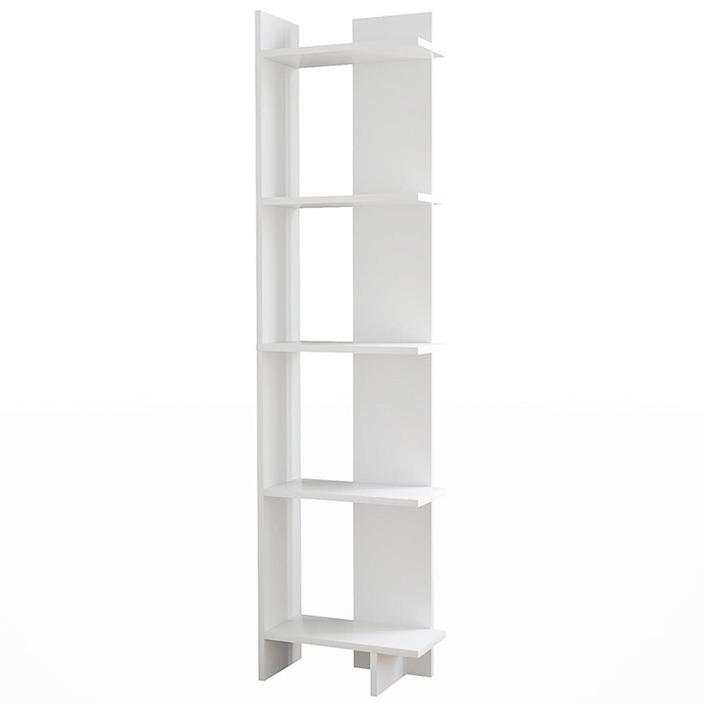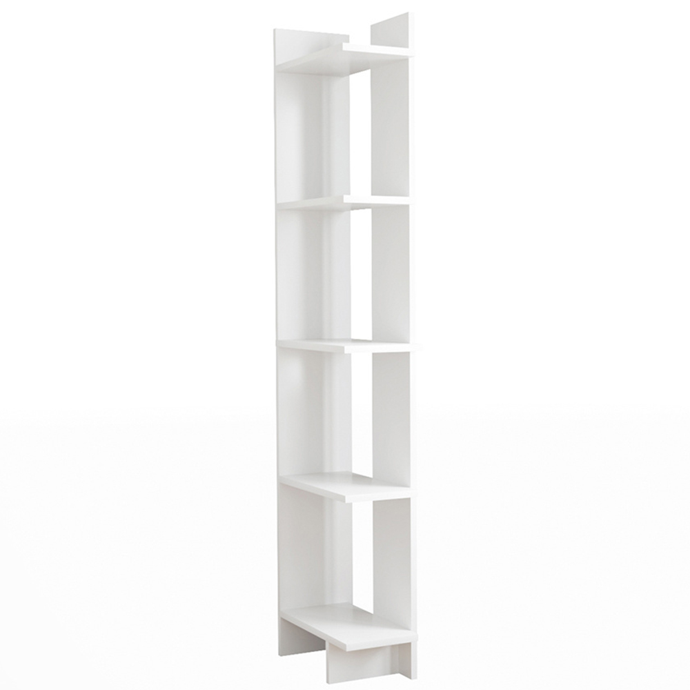 H&O Direct 5 Shelf White Modern Corner Bookshelf
