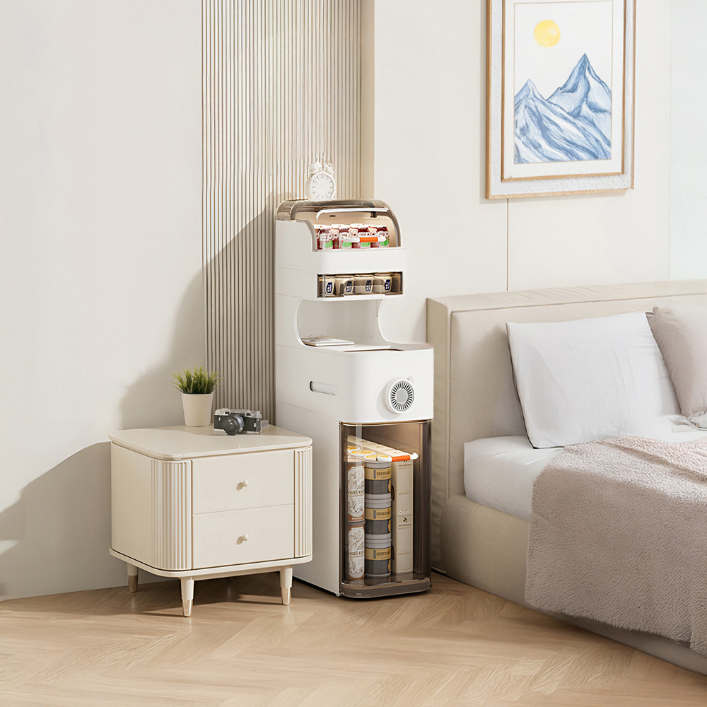 This clever storage organiser is built to last, made from durable plastic that's both waterproof and moisture-resistant. Its slim design is ideal for tight spaces, slipping neatly into corners of your kitchen, bathroom, bedroom, or living room. Positioned against the wall, it maximises space while keeping your home clutter-free. The transparent grey doors make it easy to see what’s inside, and with multiple compartments, you can organise a variety of items effortlessly. A simple, functional solution to keep everything tidy and in its place.