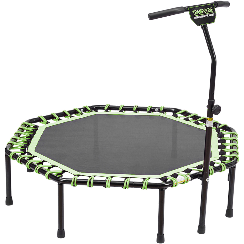 Kickstart a full-body workout at home with our fitness trampoline. Featuring a unique octagonal shape, it provides added jumping space, making your workouts more effective by engaging muscles across your entire body. Designed to protect your joints, it reduces impact while you exercise. The adjustable T-shaped handle offers extra support and balance, with three height settings to fit everyone in the family.