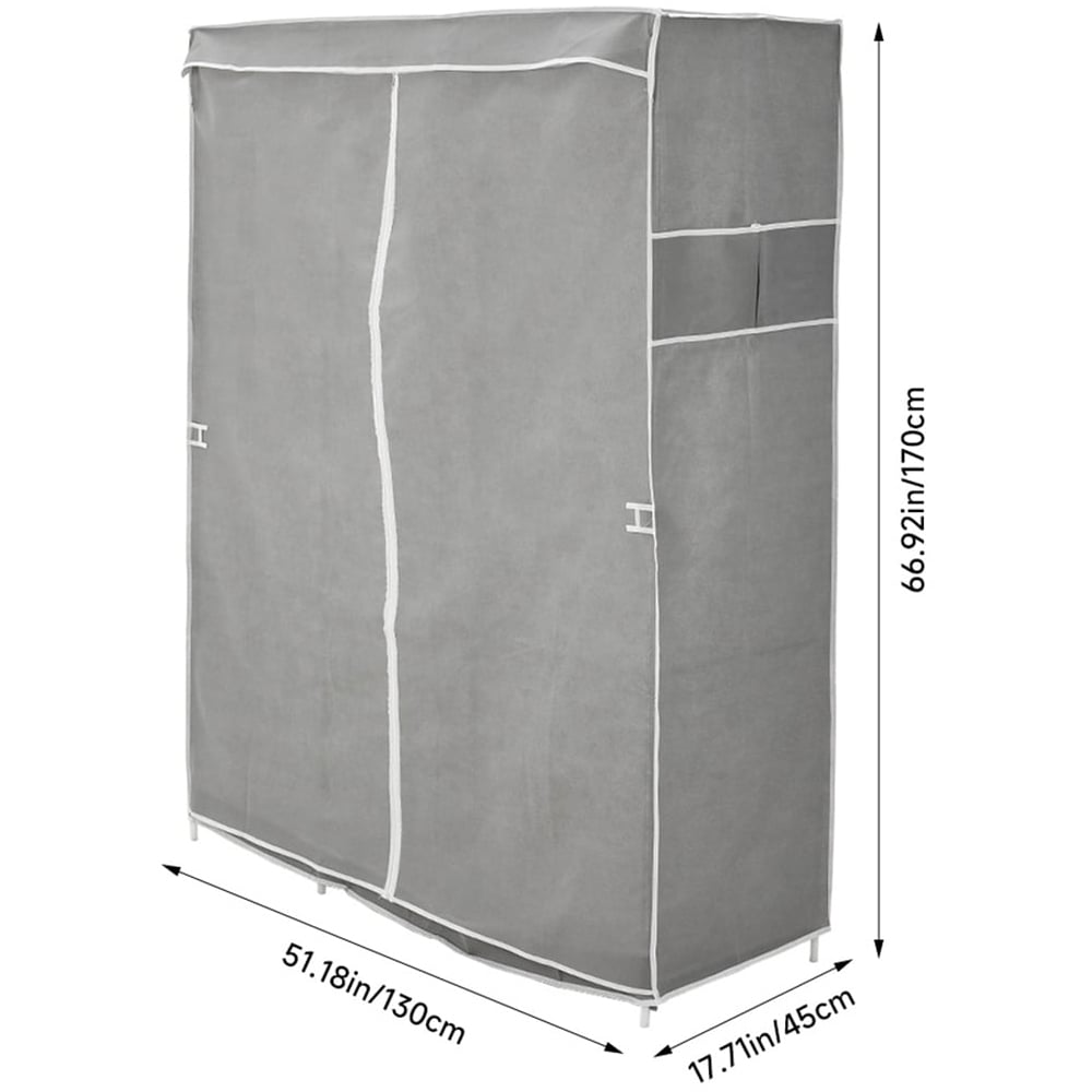 Maximise storage in small spaces with this practical non-woven wardrobe. Featuring tie-back doors on both sides for easy access, it offers ample storage for clothes and accessories. Made from durable, tear-resistant non-woven fabric and supported by a sturdy metal frame, this wardrobe is lightweight, easy to assemble, and perfect for renters or those constantly on the move.