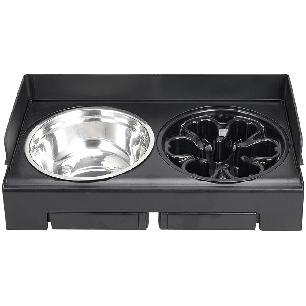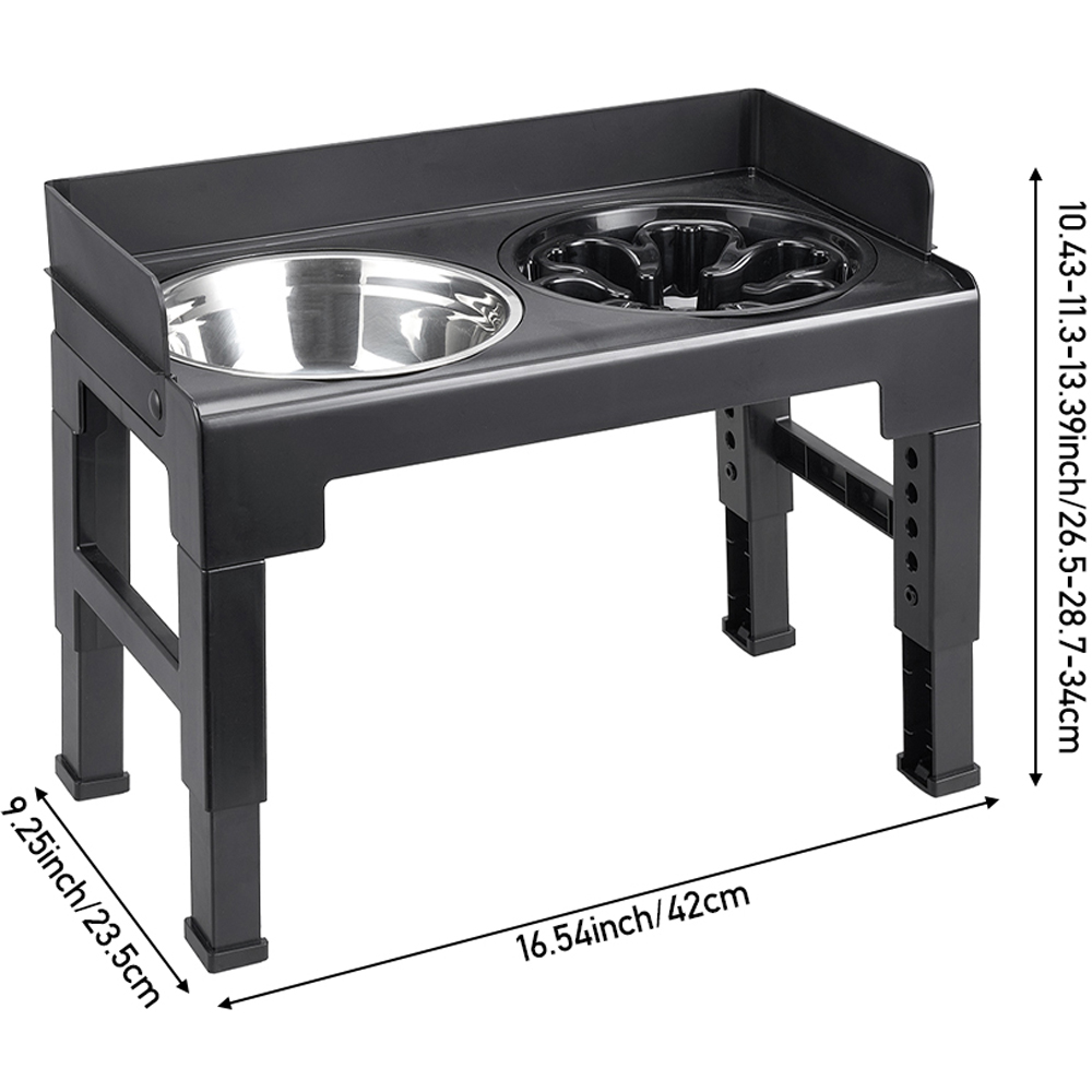 Make mealtime comfy with this height-adjustable feeder. Five levels suit pets of all sizes, easing neck strain. The large stainless steel bowl holds plenty, while the slow-feed design helps prevent gulping. Raised edges keep spills in the bowl, so floors stay clean.