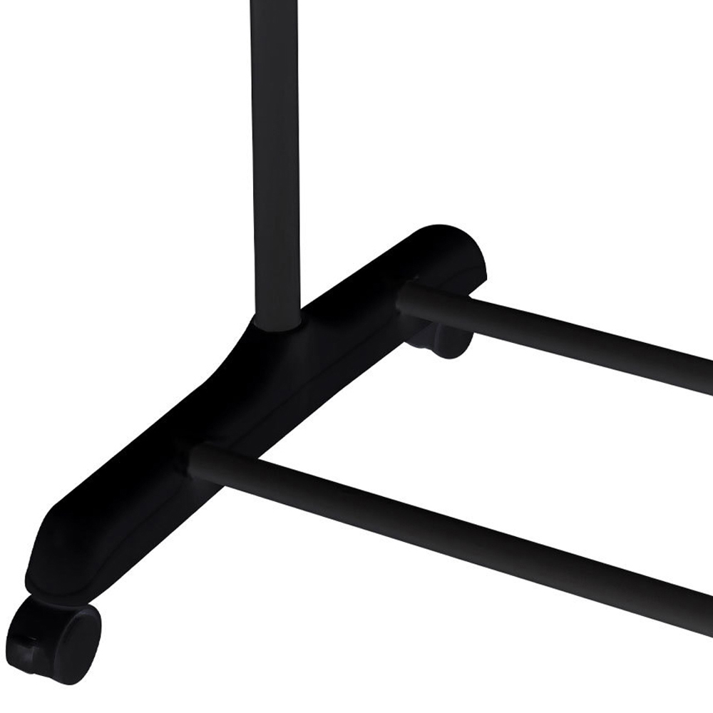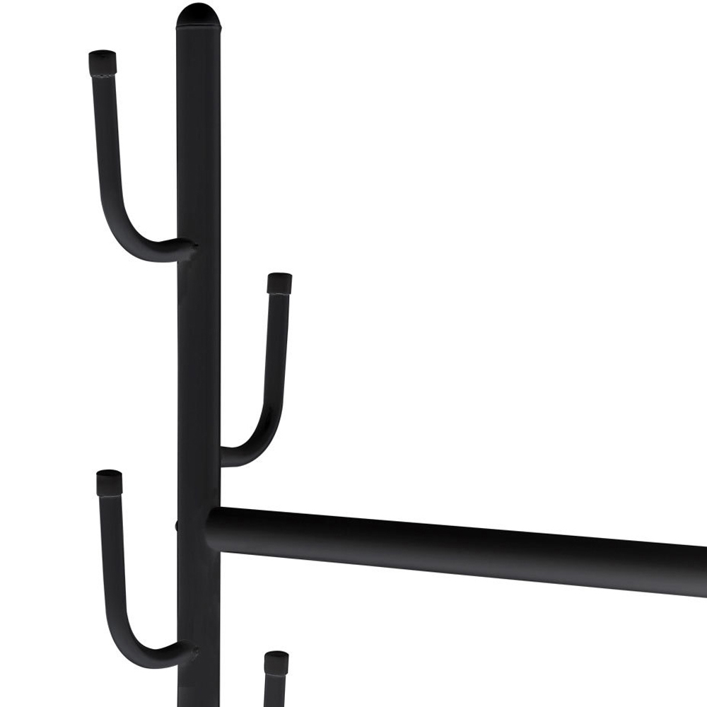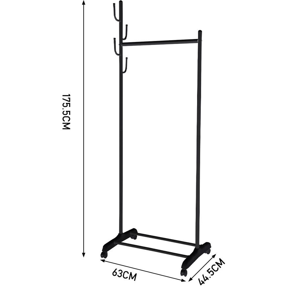 The Garment Rack is here to offer you style and practicality. Made from durable carbon steel, this rack is built to handle heavy loads while adding a sharp, modern touch to your room with its sleek black finish. It includes a tree hanger on the side for accessories like bags, scarves, hats, and umbrellas. The lower shelf provides extra storage for shoes, boxes, or baskets, and with its attached wheels, you can easily move it wherever you need it.