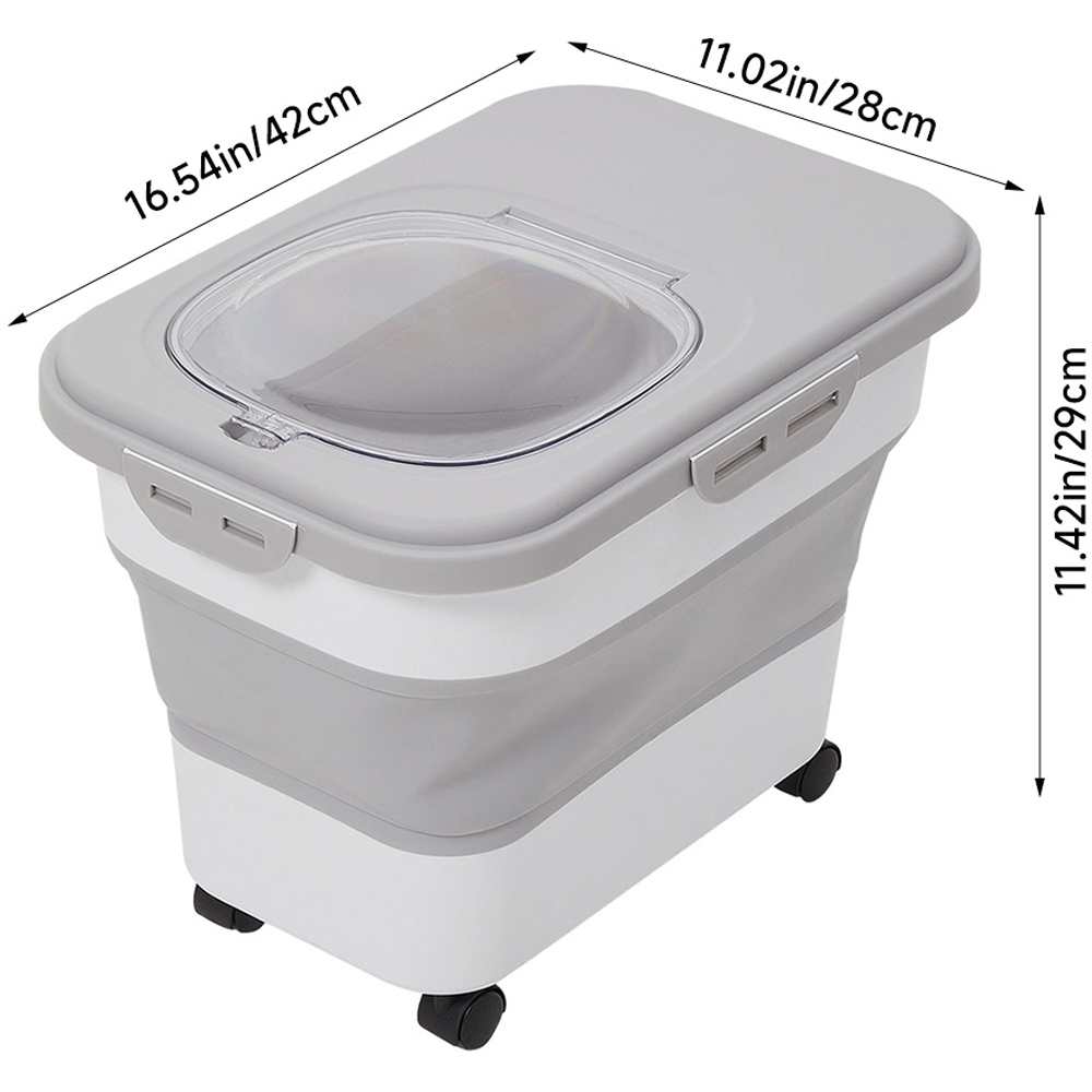 Keep your pet’s food fresh and easy to access with this collapsible storage container. Made from food-safe plastic, it holds a generous 19L to cut down on refills. The clear flip-top lid with a magnetic lock lets you check contents quickly while sealing in freshness. A built-in moisture compartment helps keep food dry, and four smooth wheels make moving it around simple. When not in use, it folds down to save space.